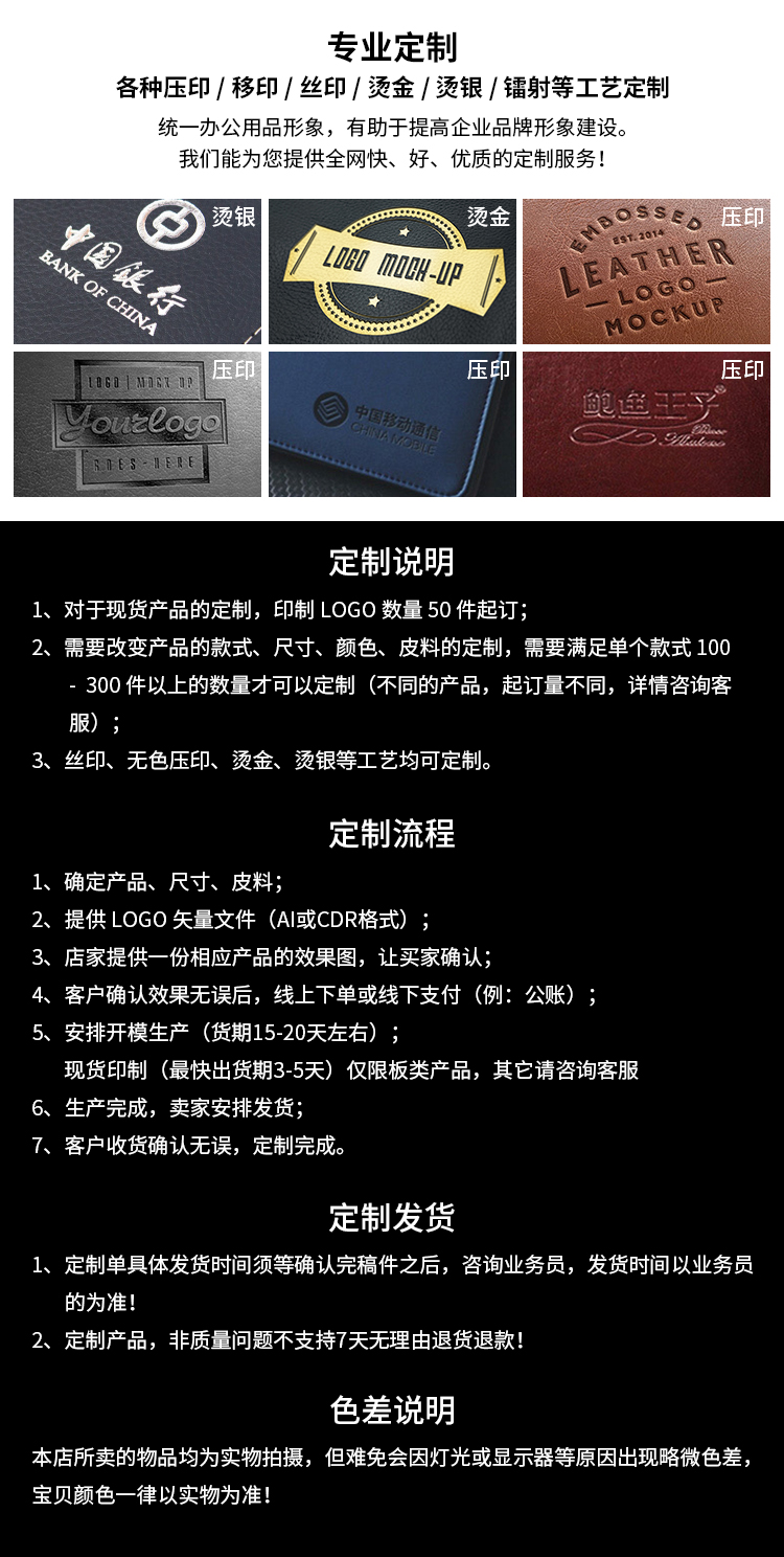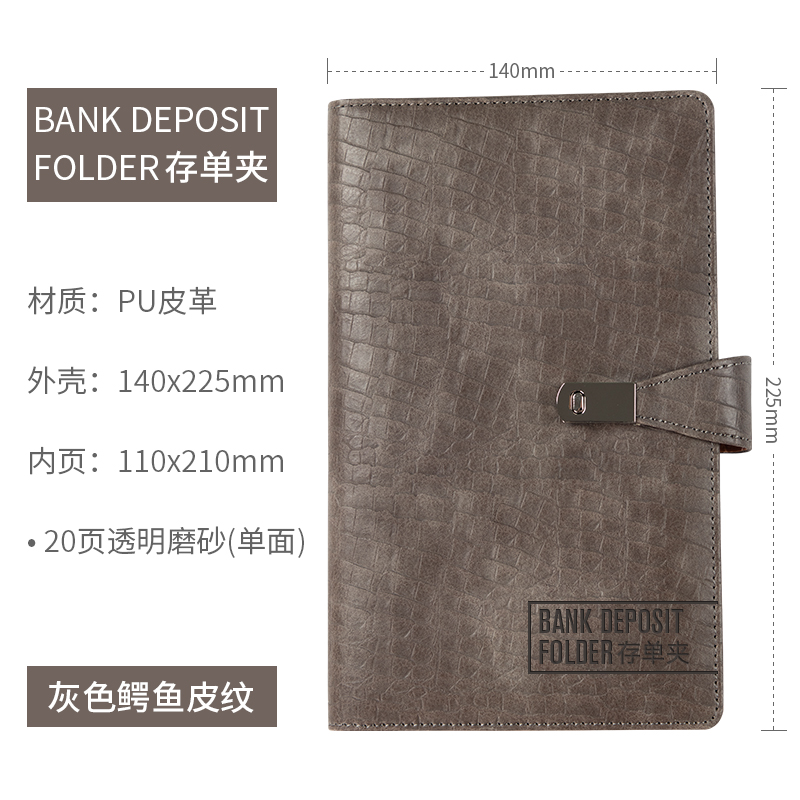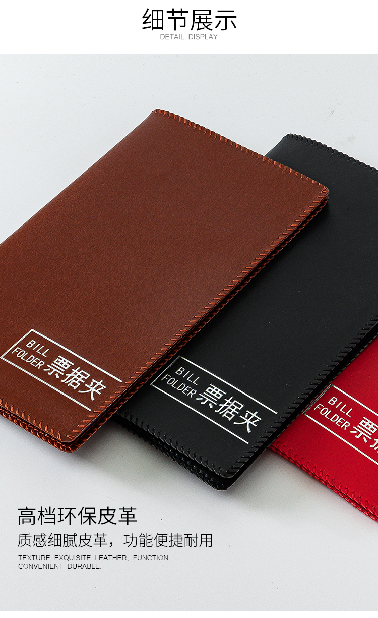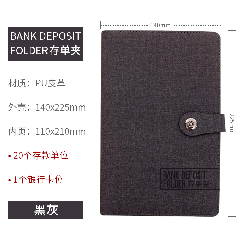 • 보증금 폴더는 검정색과 회색 20페이지에 보증금 40장을 담을 수 있습니다(PU 색상 변경 가죽).