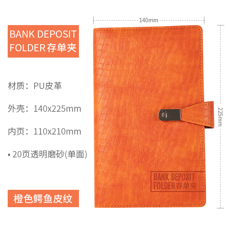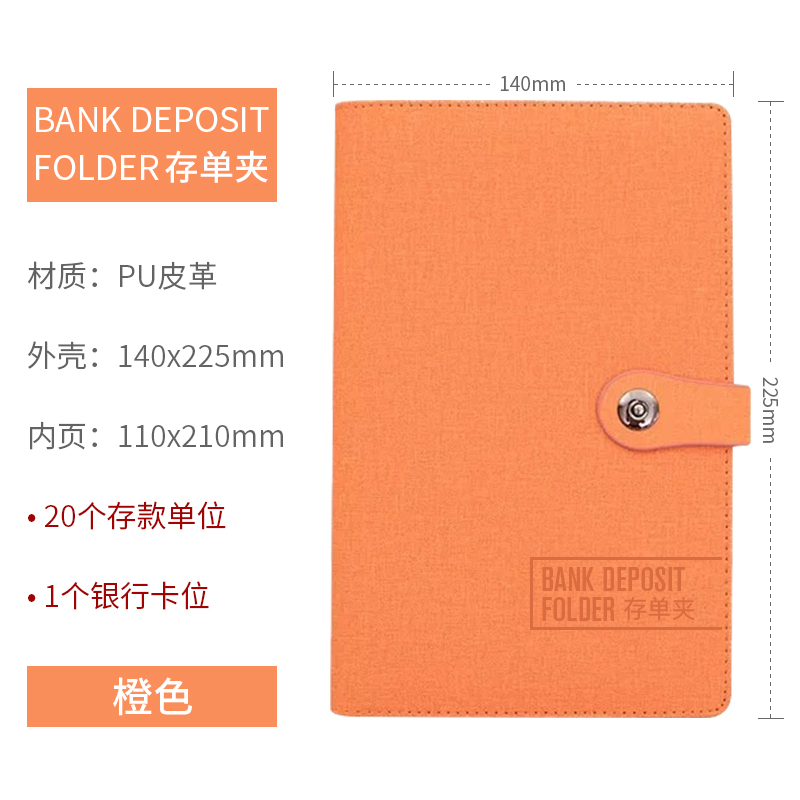 • 주황색 통장 폴더에는 20페이지에 40장의 통장(PU 색상 변경 가죽)을 담을 수 있습니다.