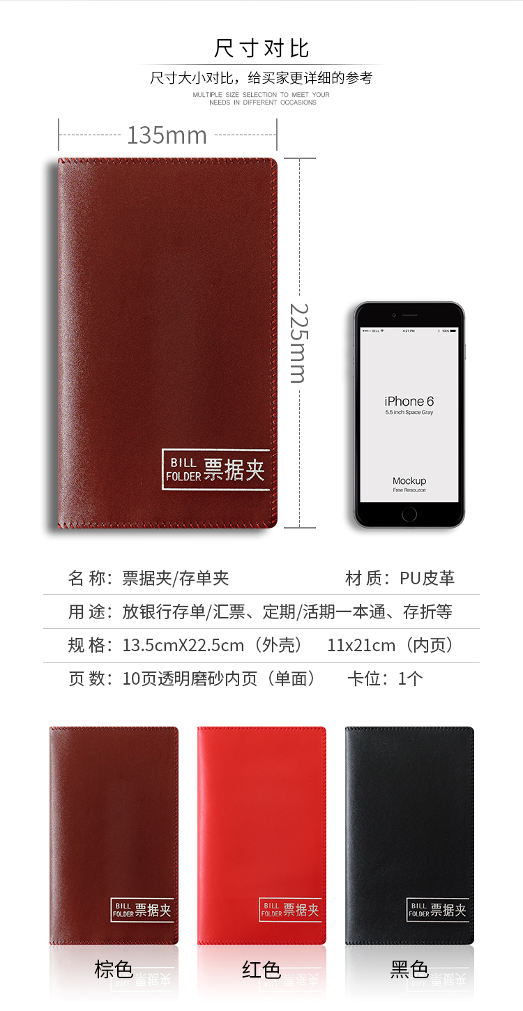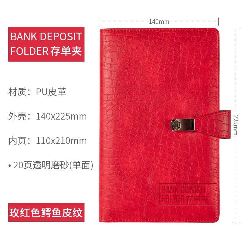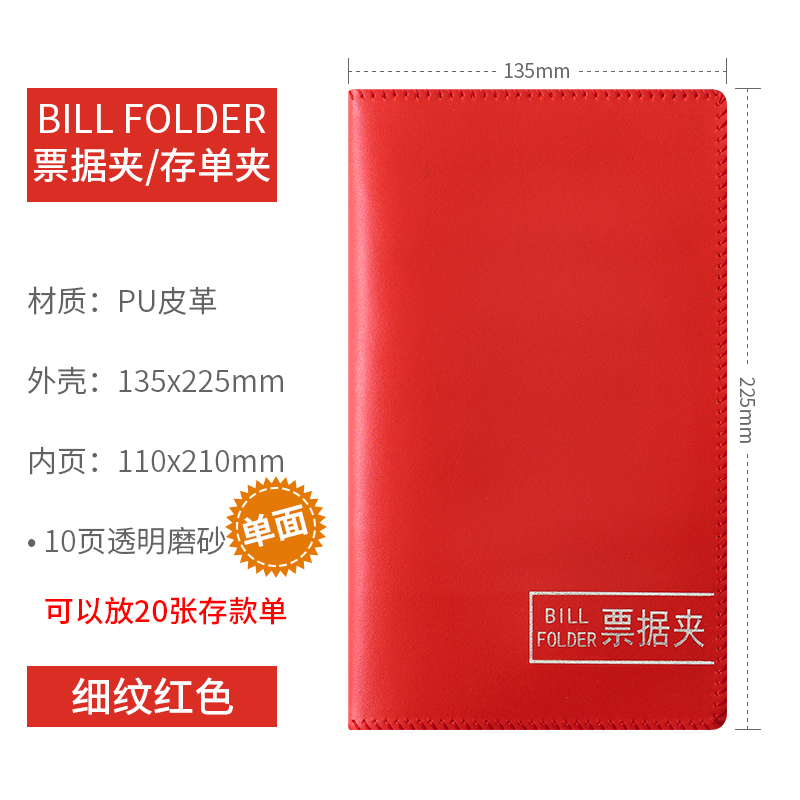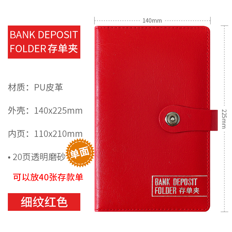 • 빨간색 지폐 홀더는 10페이지에 보증금 20장을 담을 수 있습니다(소프트 커버).