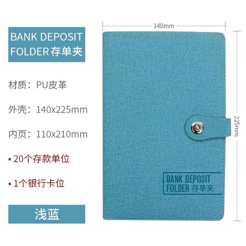 • 입금 폴더 하늘색 20페이지에는 입금 전표 40장을 담을 수 있습니다(PU 색상 변경 가죽).