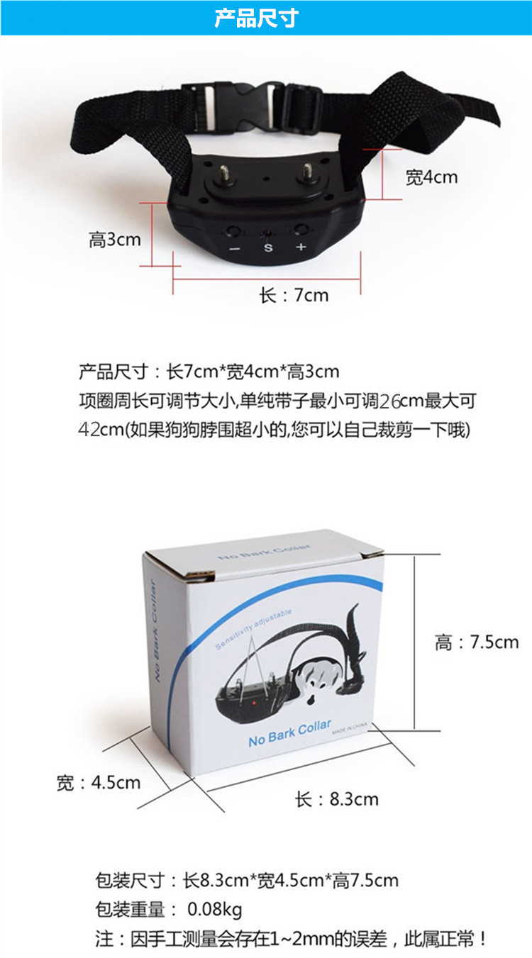 3、如果主人外出,尽量止吠器项圈不要勒得太紧,防止狗狗活动时以免擦伤皮肤!!!