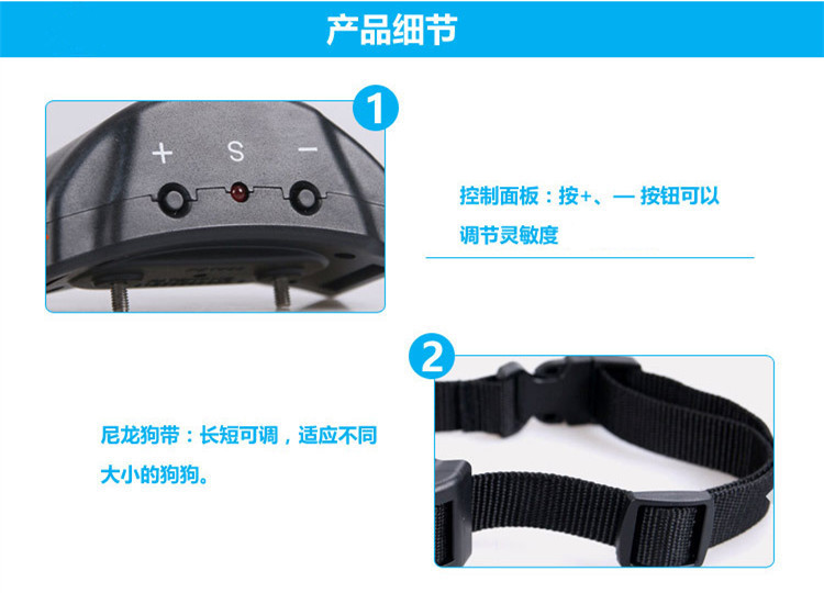 1、本止吠器是全自动的,安装了6V碱性电池就行,配戴好狗狗脖子上调节好松紧,只要有大的叫声止吠器就会自动工作了;