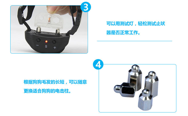 1、开始使用止吠器的顾客朋友,请一定要在旁边仔细观察狗狗对止吠器的反应哦,如果出现越电越叫的情况下,请马上取下止吠器,一定要慢慢训练狗狗,要让它明白佩戴止吠器是不能乱叫的,如果乱叫会受到处罚的!毕竟止吠器只是一种工具,电狗狗不是目的,只是通过佩戴止吠器这个方法来达到狗狗止吠的目的!!!