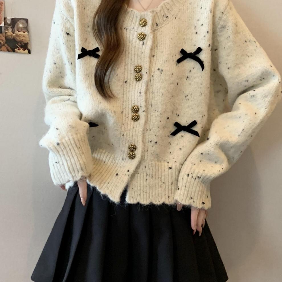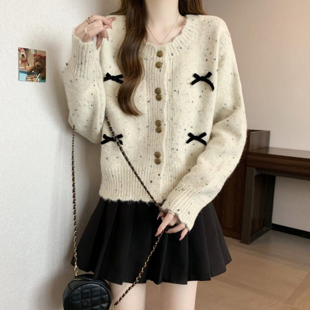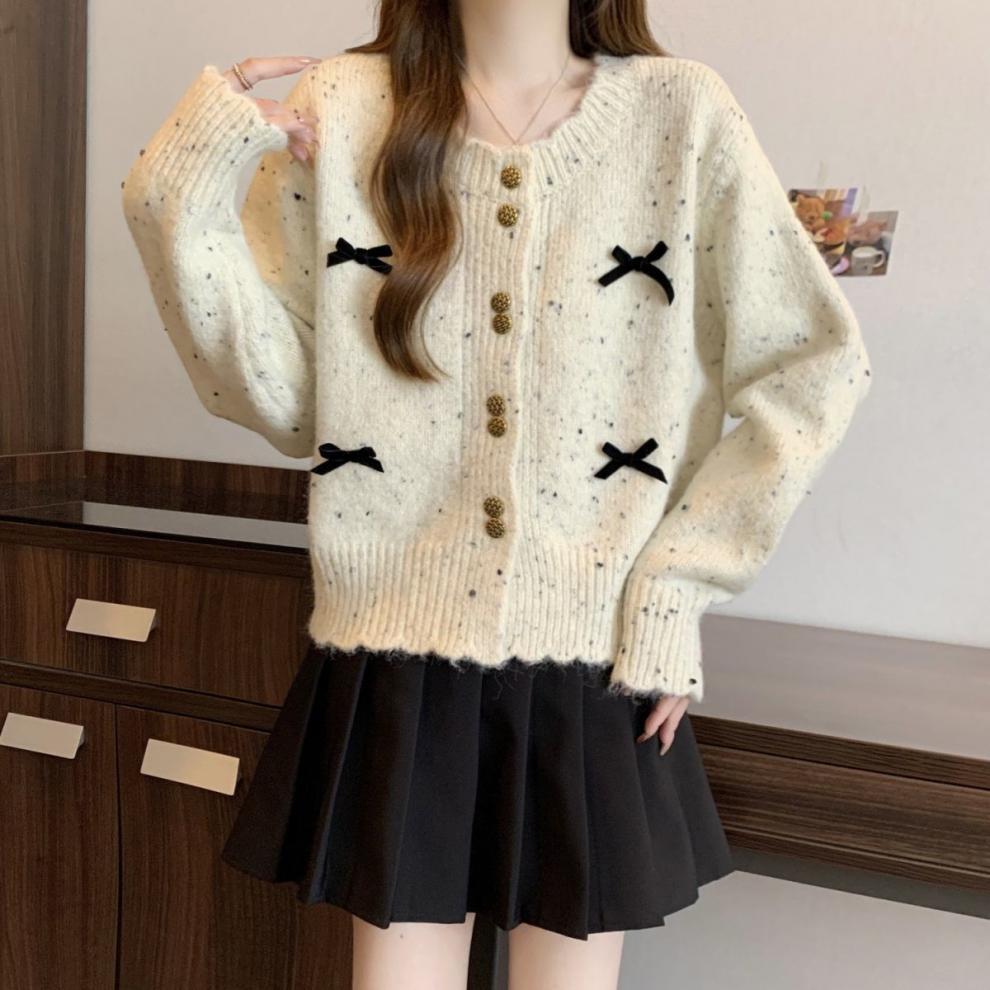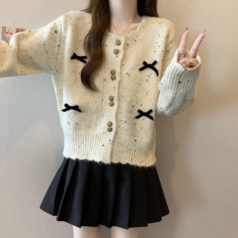 한국의 세련된 컬러 포인트 니트 카디건 여성 2025 가을 겨울 새 플러스 사이즈 통통녀 짧은 활 스웨터 코트스토어 가기