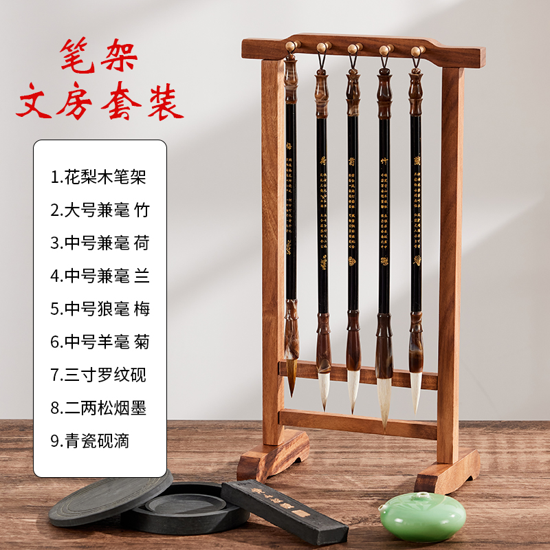 • 로즈우드 브러시 홀더 + 엄선된 펜 5개