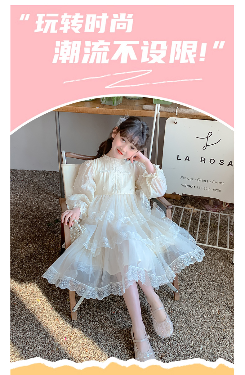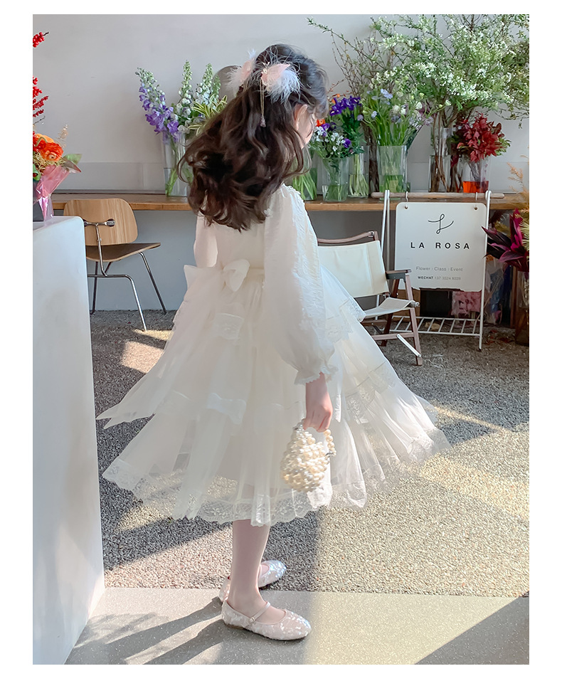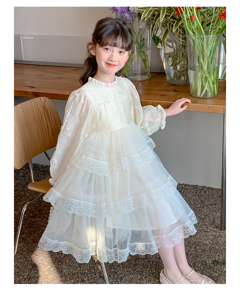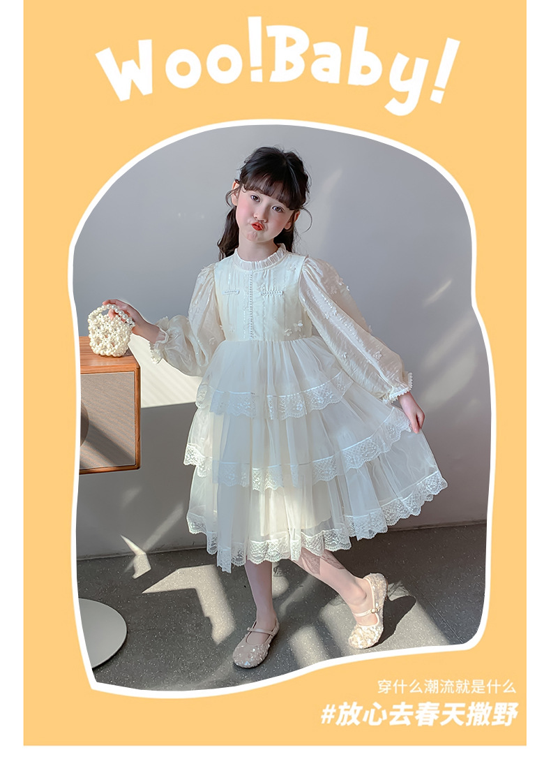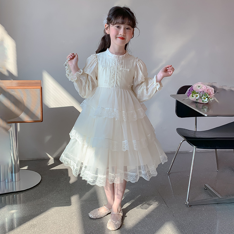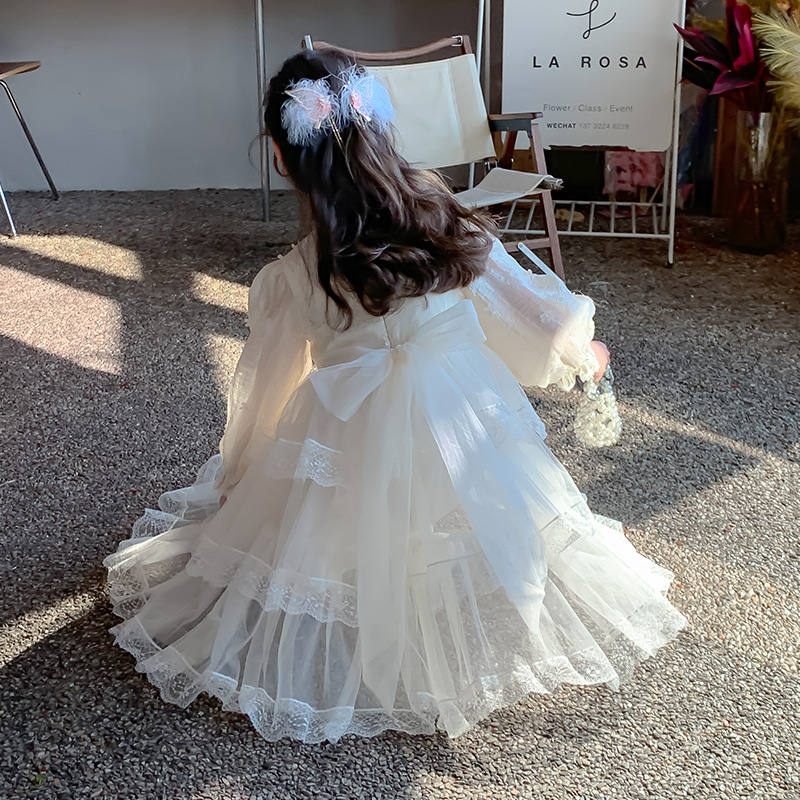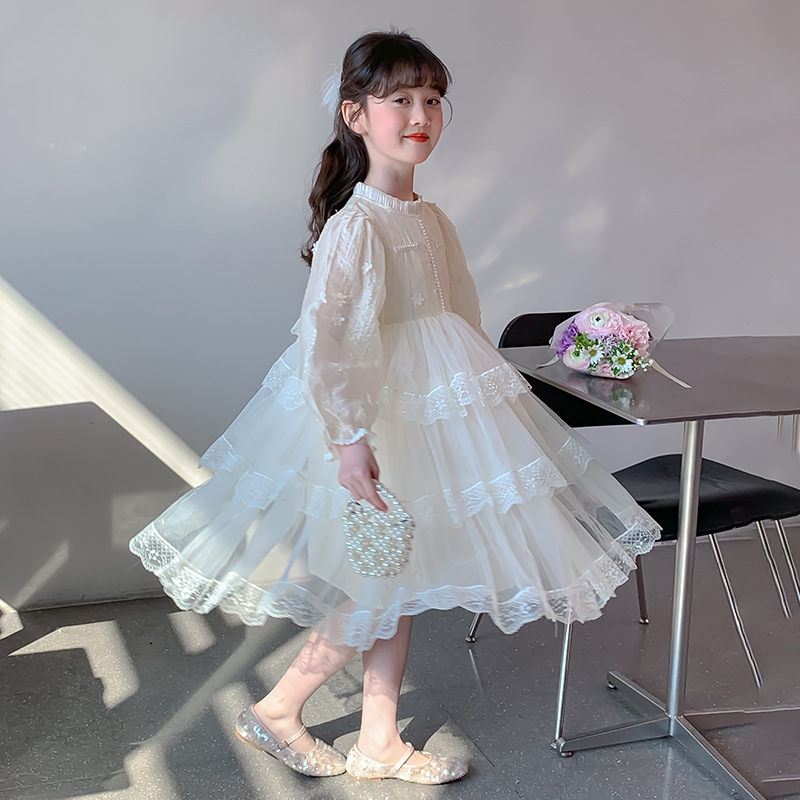 봄 소녀 원피스 아동복 어린이 소녀 긴팔 공주 스커트 서양식 거즈 스커트 2025 새로운 국경 세대