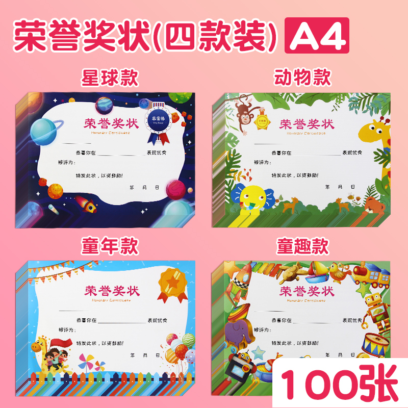 • A4/4 명예 인증서 총 100장 [행성 + 어린 시절 + 동물 + 어린애 같은 재미] - A5/A4/A3