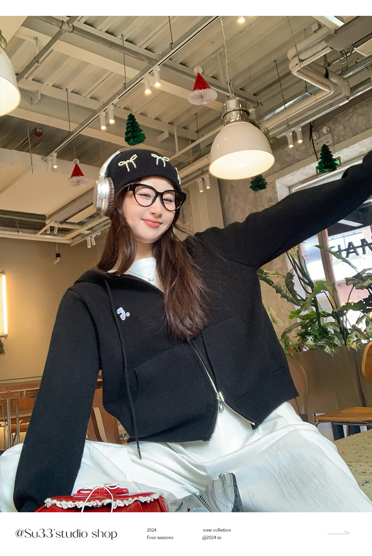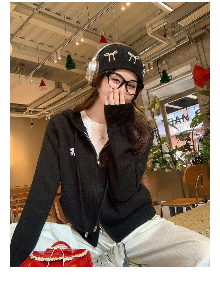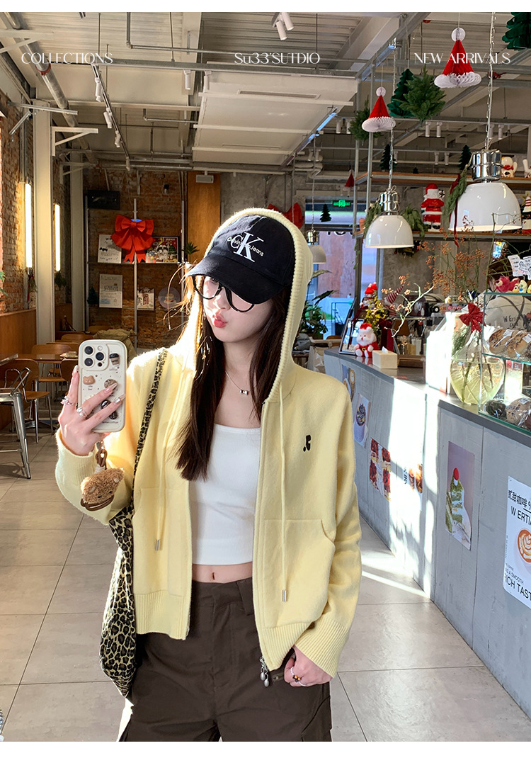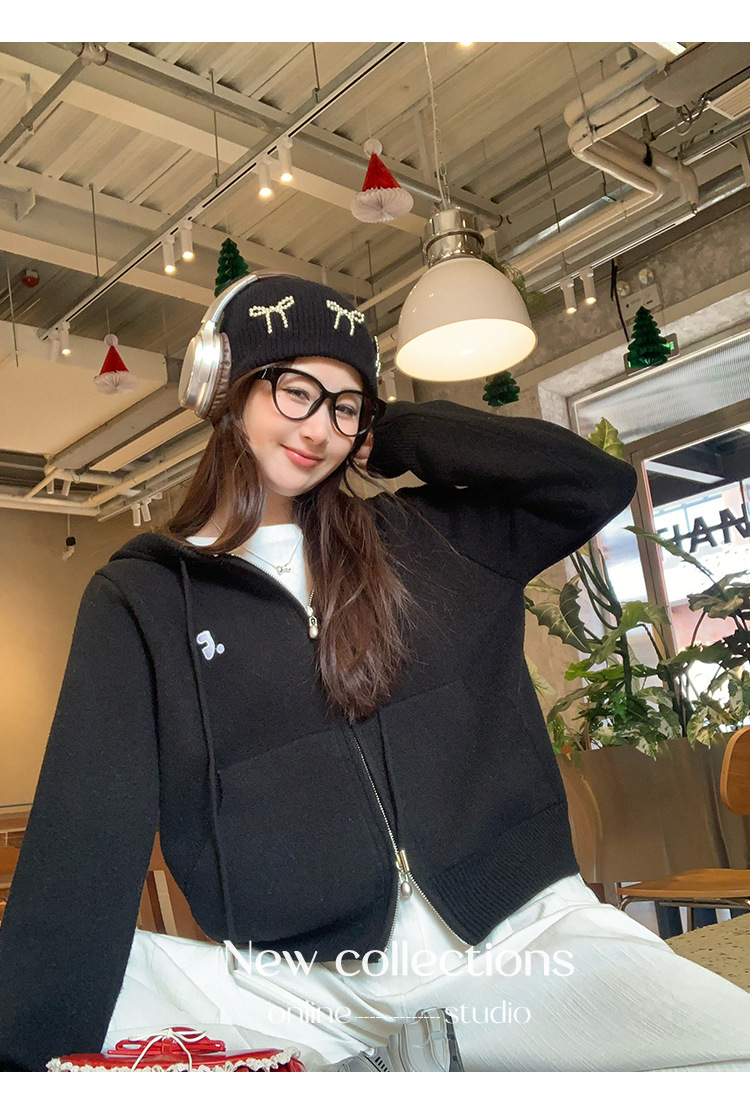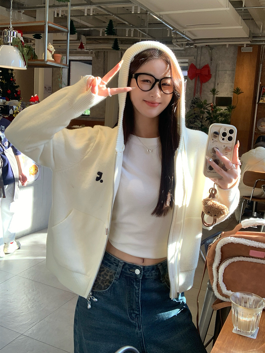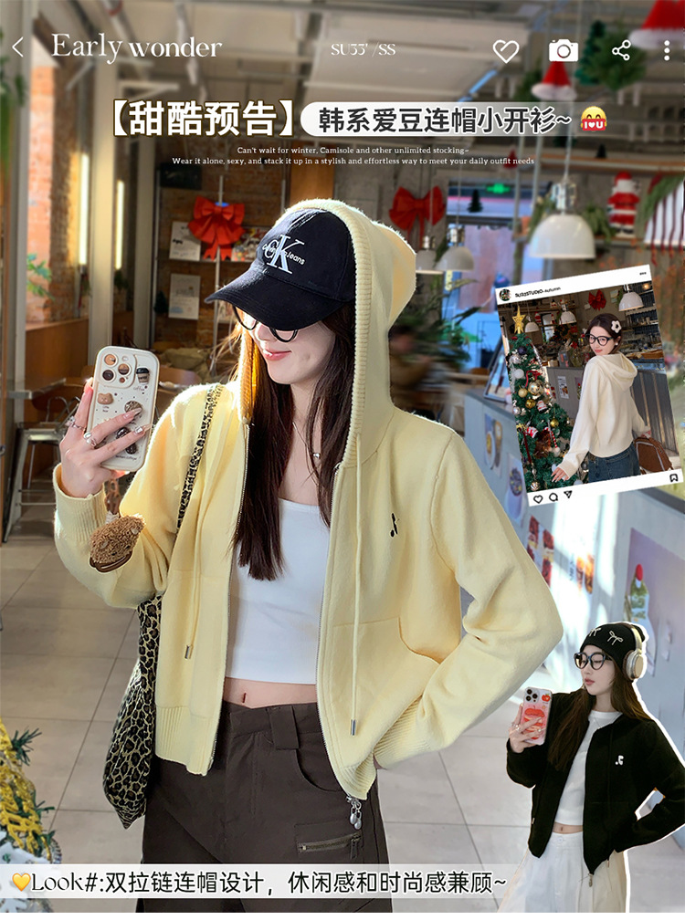 니트 카디건 2025 새로운 스웨터 코트 봄 여성 의류 이른 봄 한국 스타일 작은 착용 후드 탑
