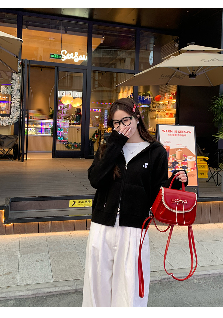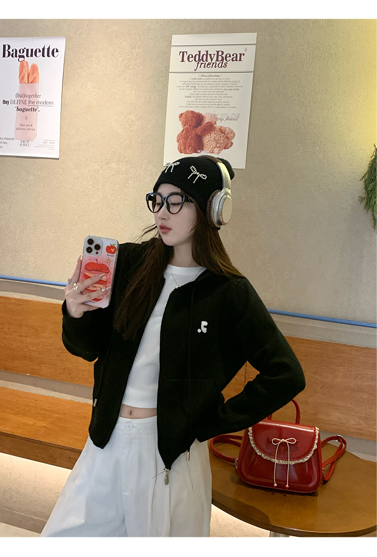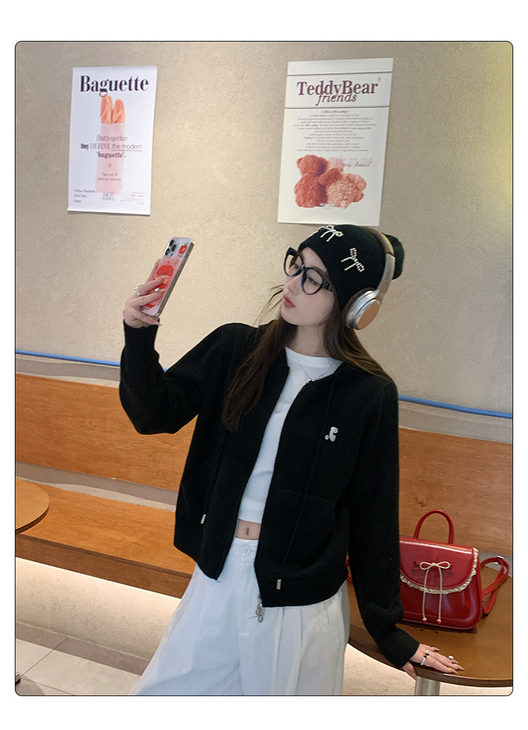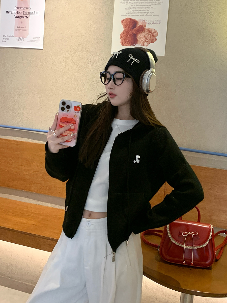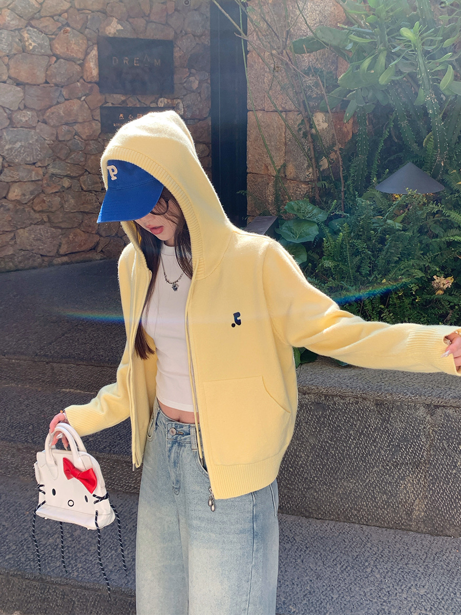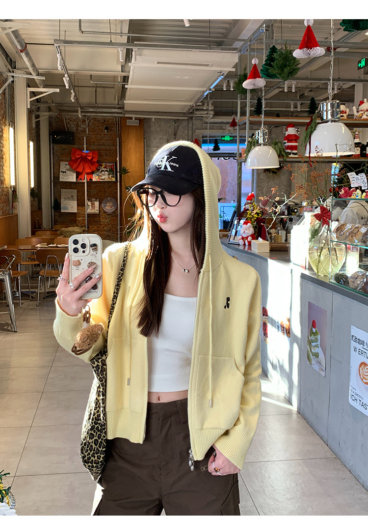 니트 카디건 2025 새로운 스웨터 코트 봄 여성 의류 이른 봄 한국 스타일 작은 착용 후드 탑