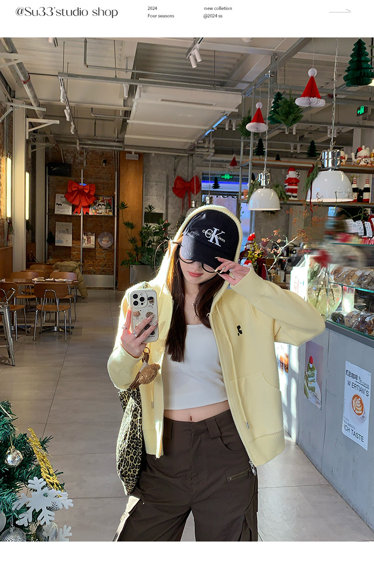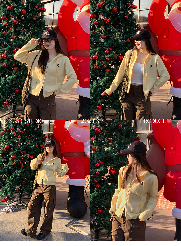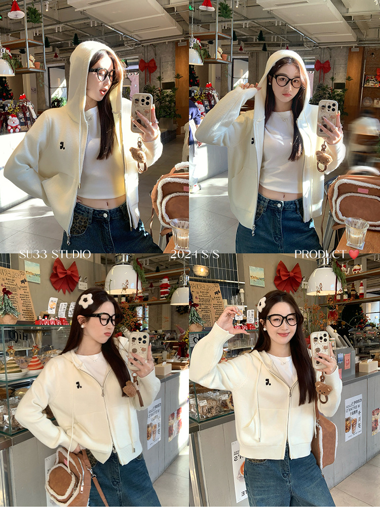 니트 카디건 2025 새로운 스웨터 코트 봄 여성 의류 이른 봄 한국 스타일 작은 착용 후드 탑스토어 가기