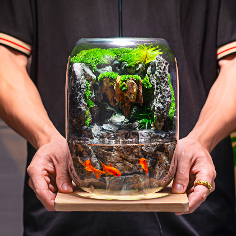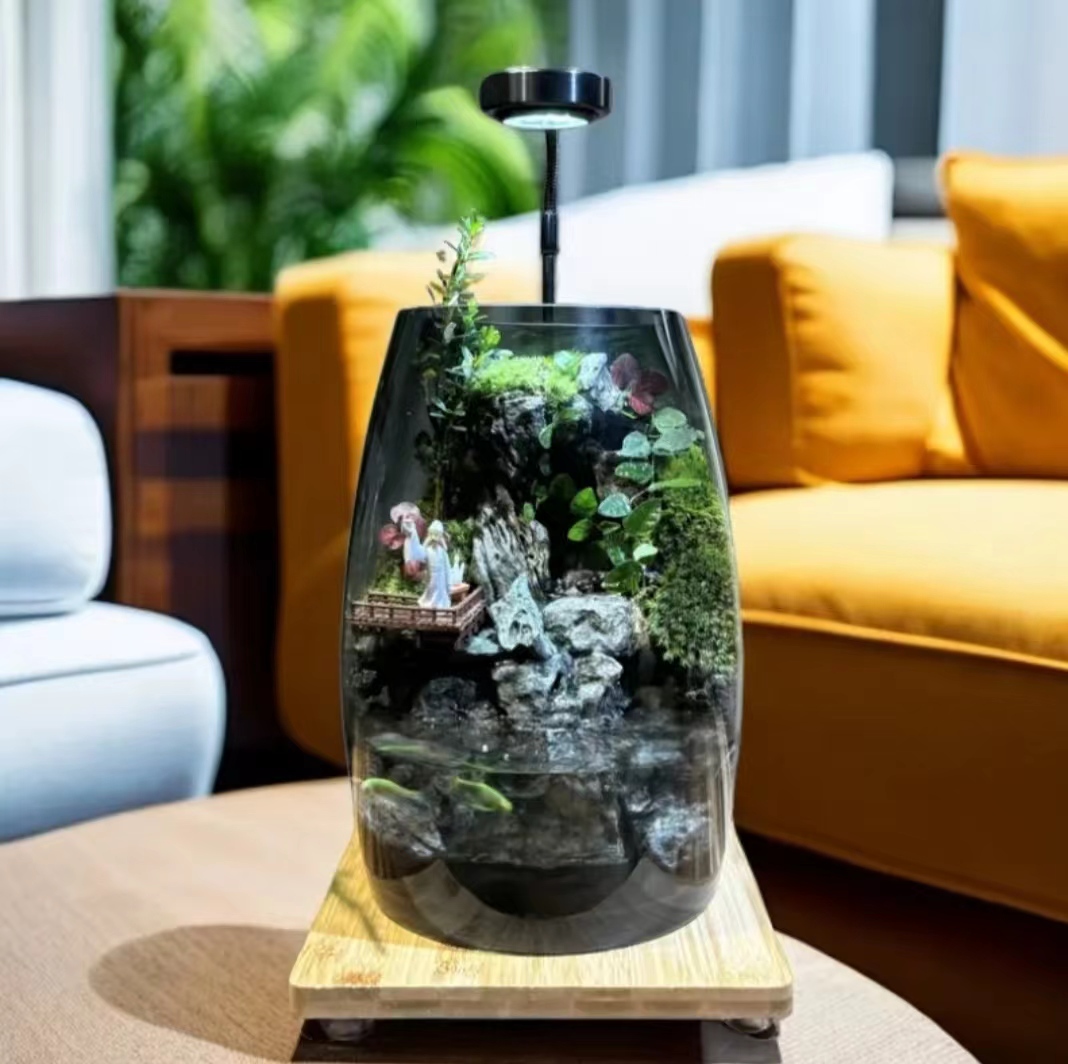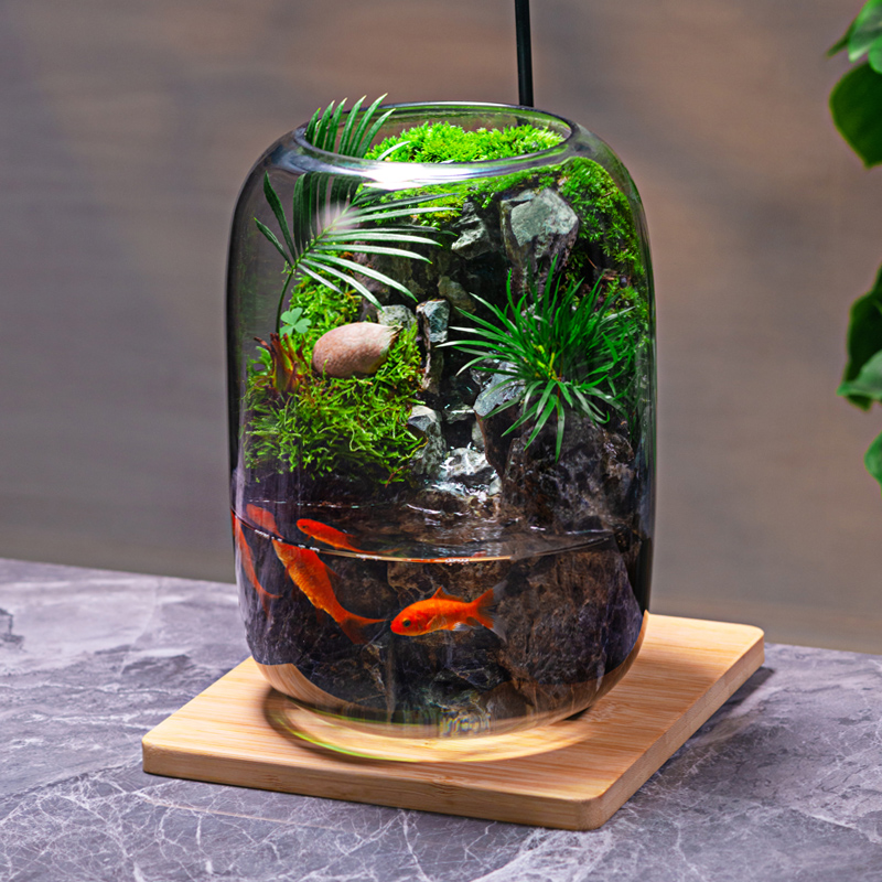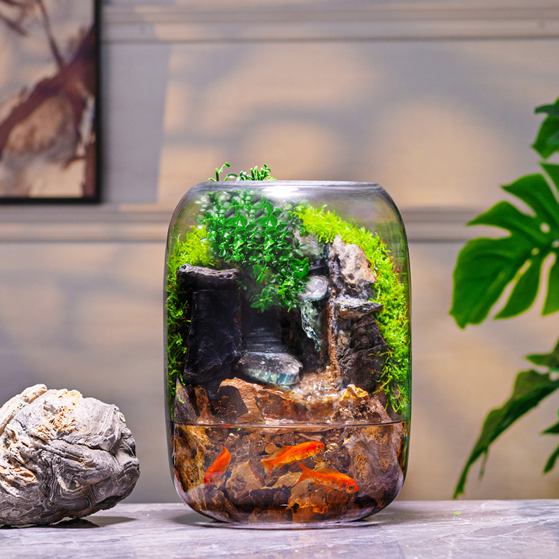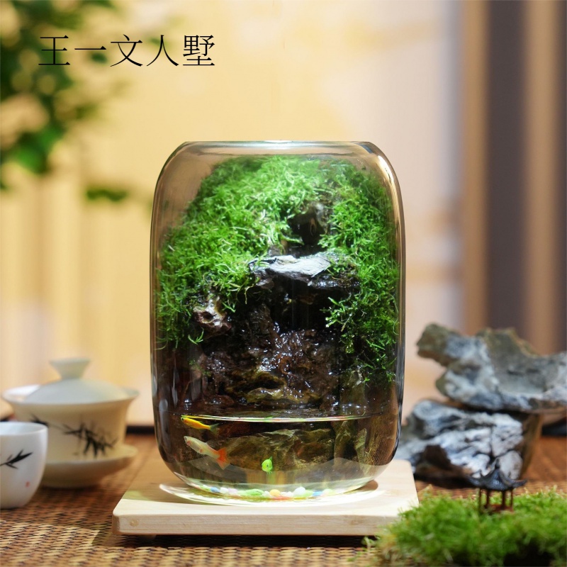 Shi Shangqingquan 이끼 마이크로 풍경 흐르는 물고기 탱크 실제 식물 생태 병 사무실 완제품 실내 선물 제공