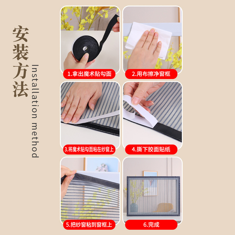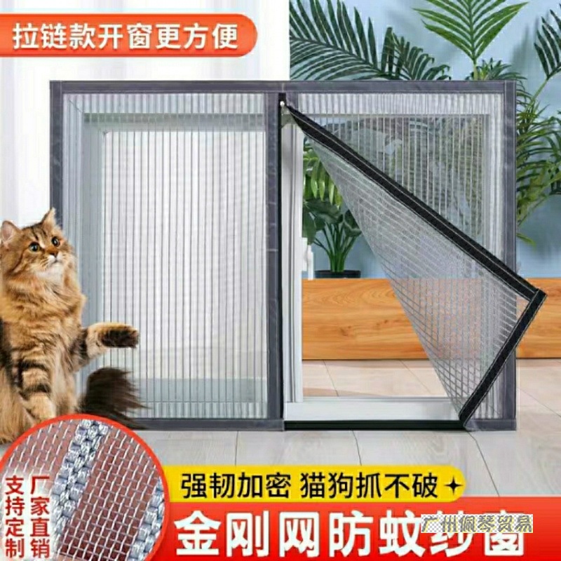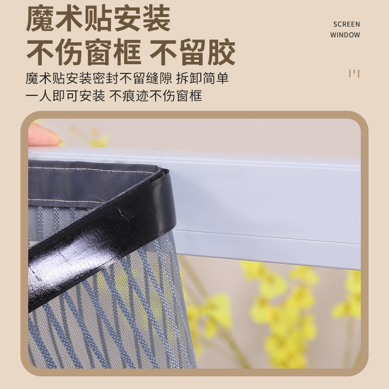 지퍼 암호화 다이아몬드 메쉬 화면 창 모기 방지 스크린 메쉬 자체 접착 벨크로 스크린 메쉬 간단한 이동식 도매스토어 가기