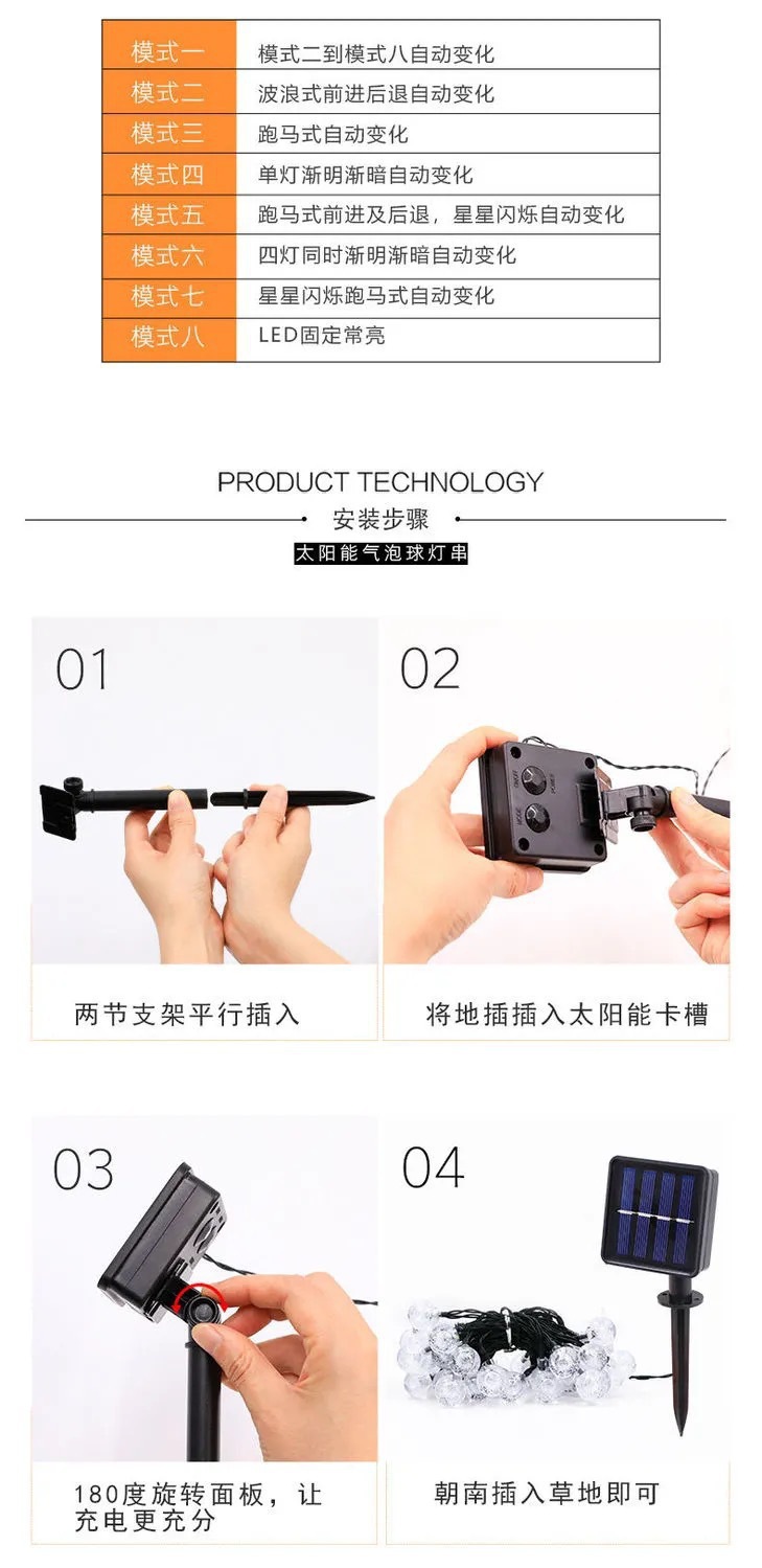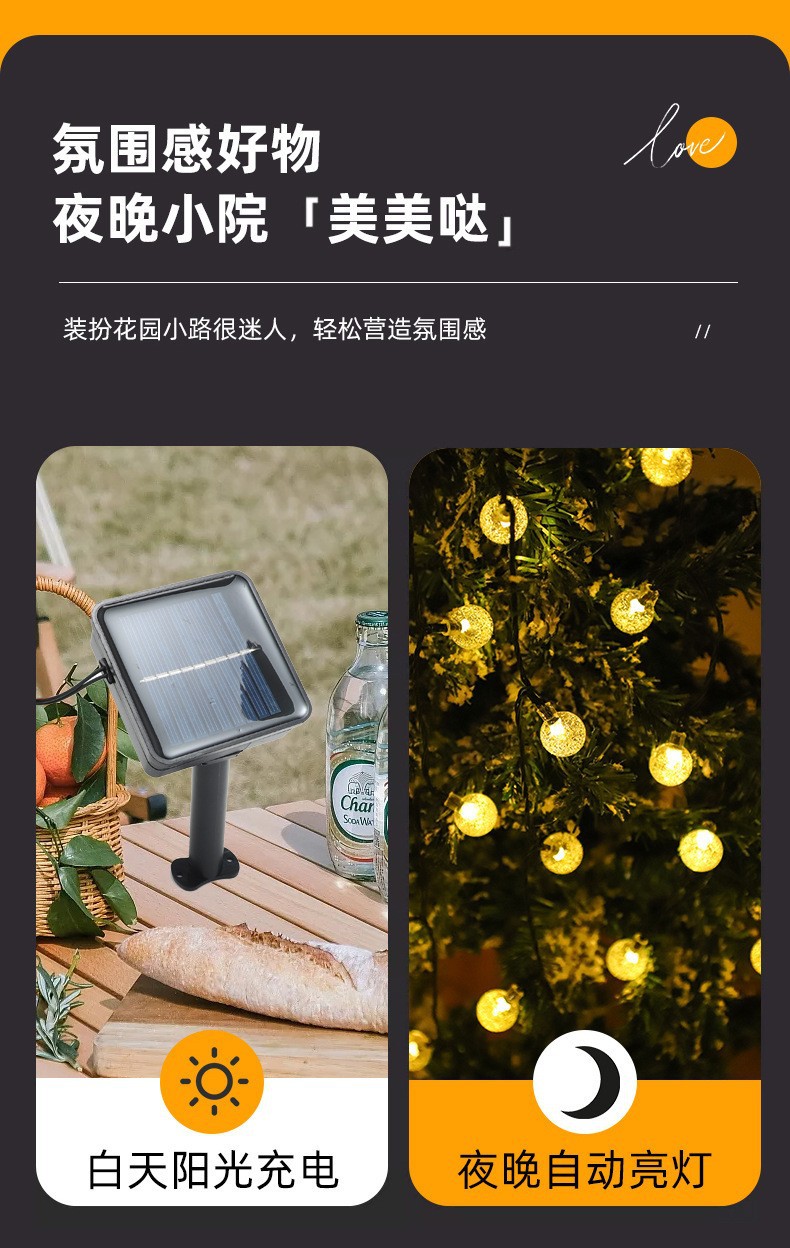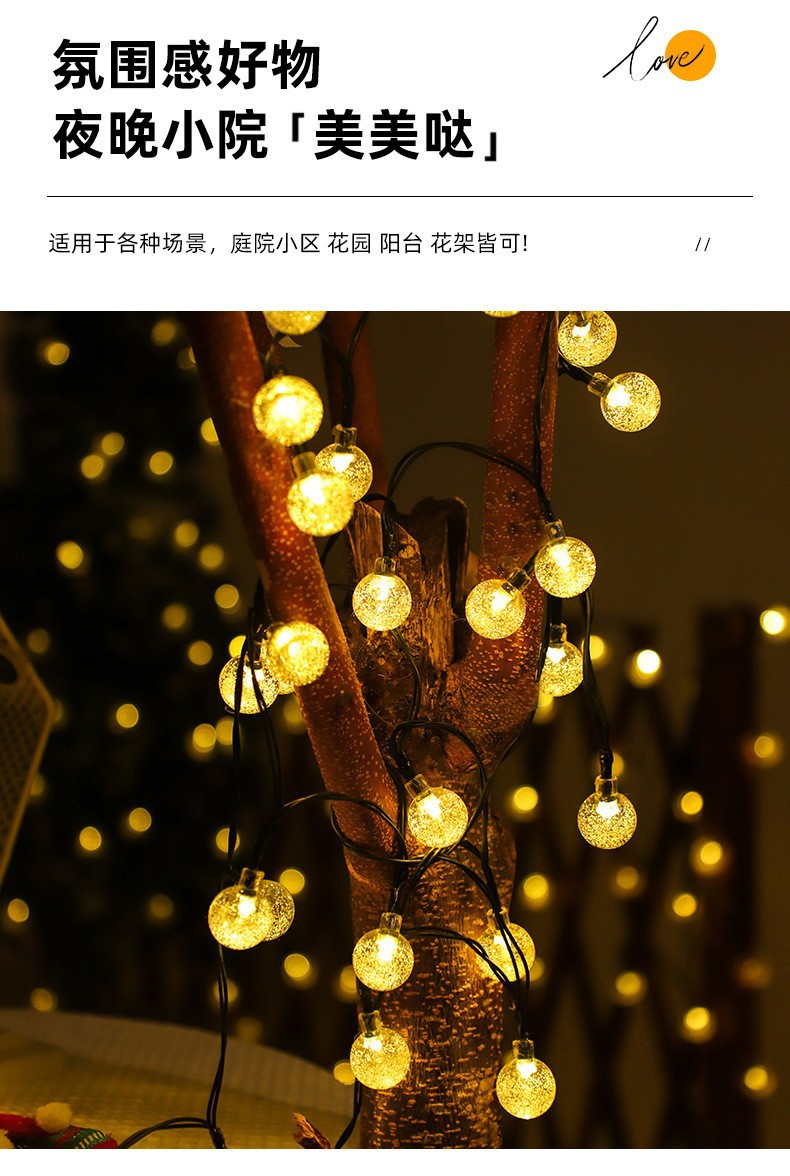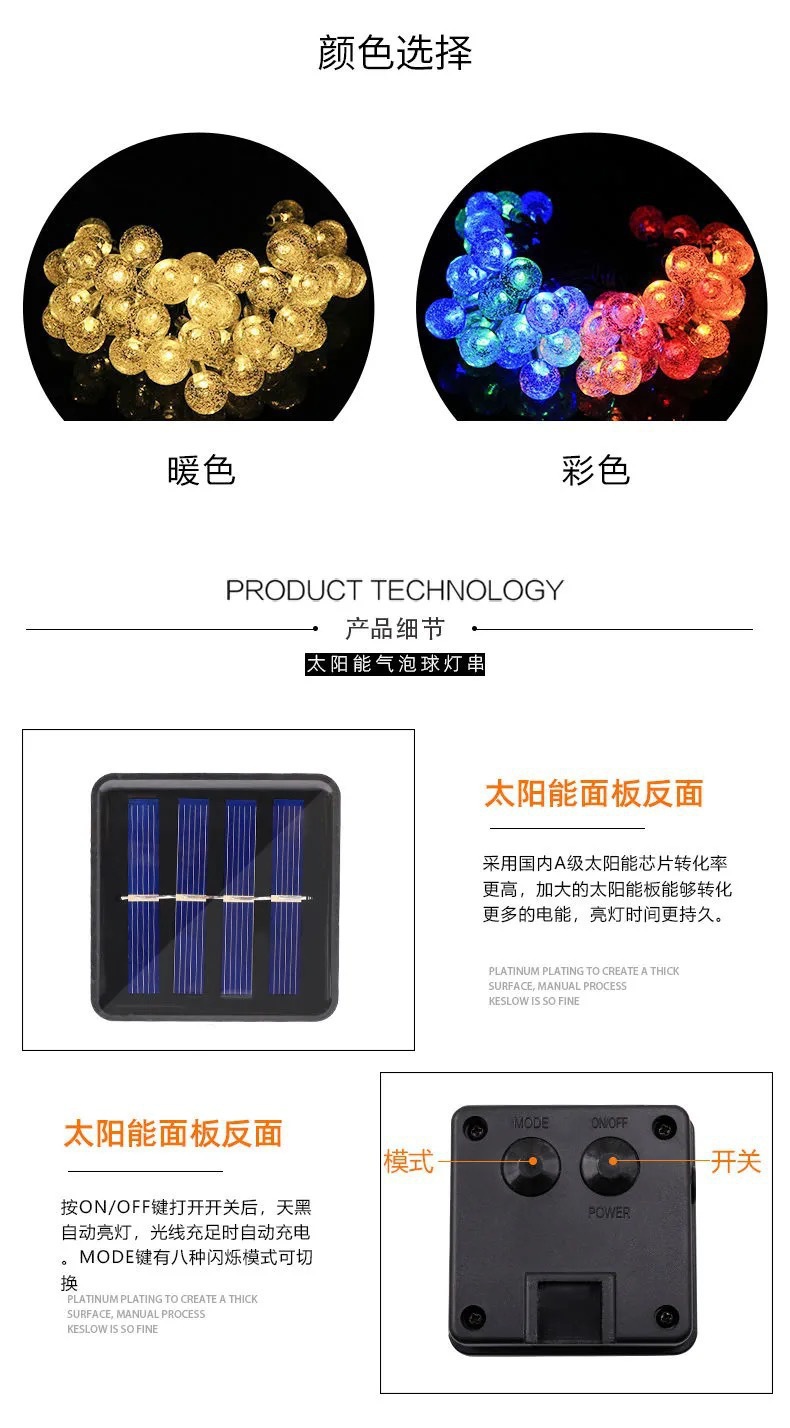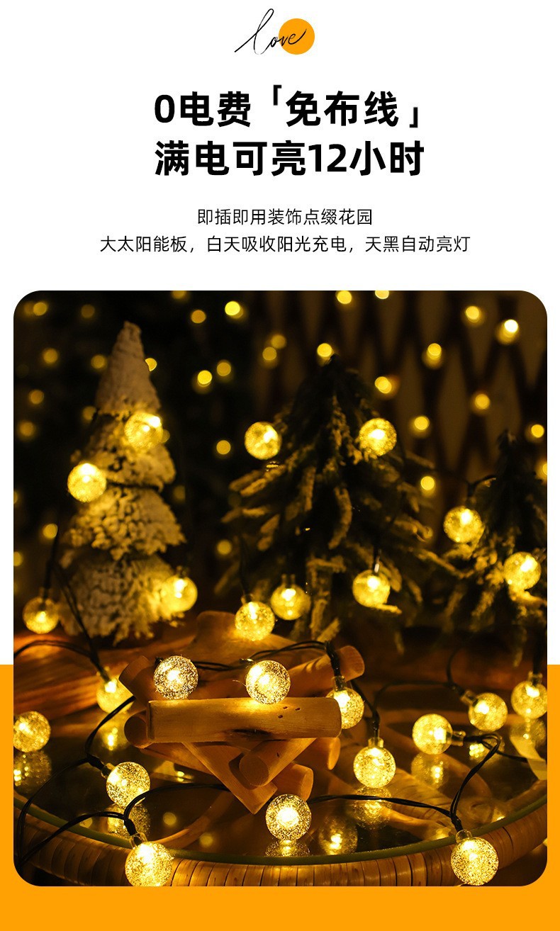 새로운 국경 led 태양 거품 공 빛 문자열 방수 컬러 조명 야외 캠핑 분위기 조명 크리스탈 볼 문자열 조명스토어 가기