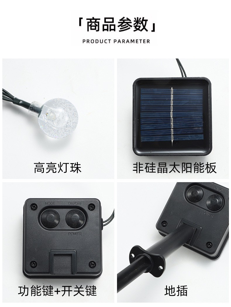 새로운 국경 led 태양 거품 공 빛 문자열 방수 컬러 조명 야외 캠핑 분위기 조명 크리스탈 볼 문자열 조명