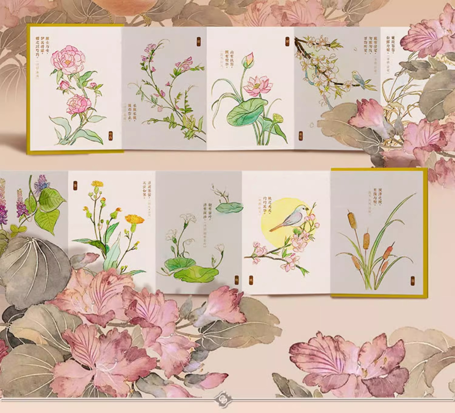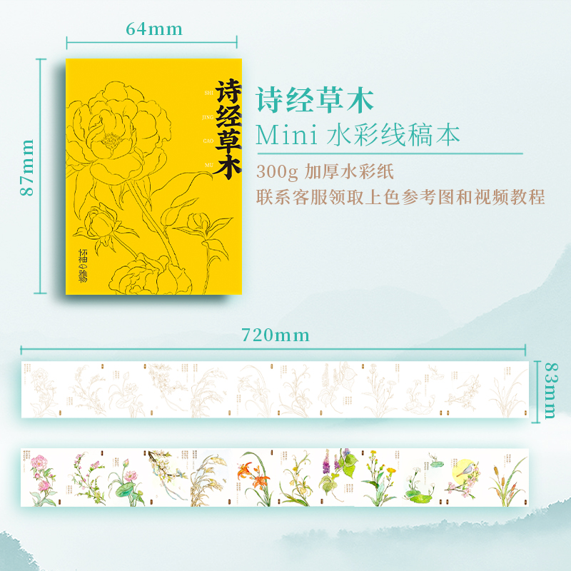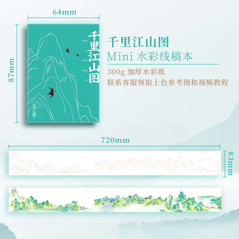• 미니 수채화 선화 책 [천 마일의 강과 산 그림] 단일 책 - 단일 상자