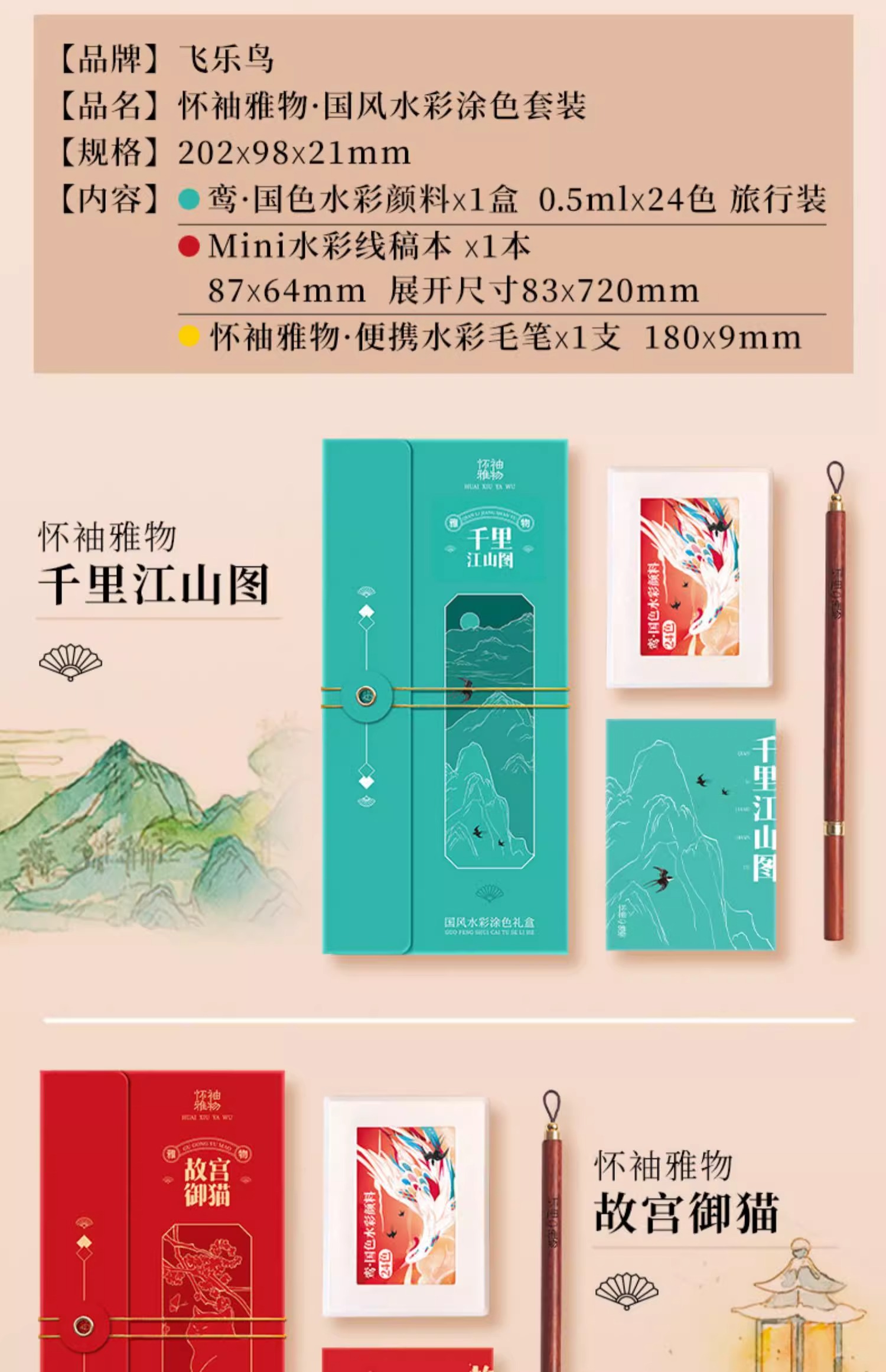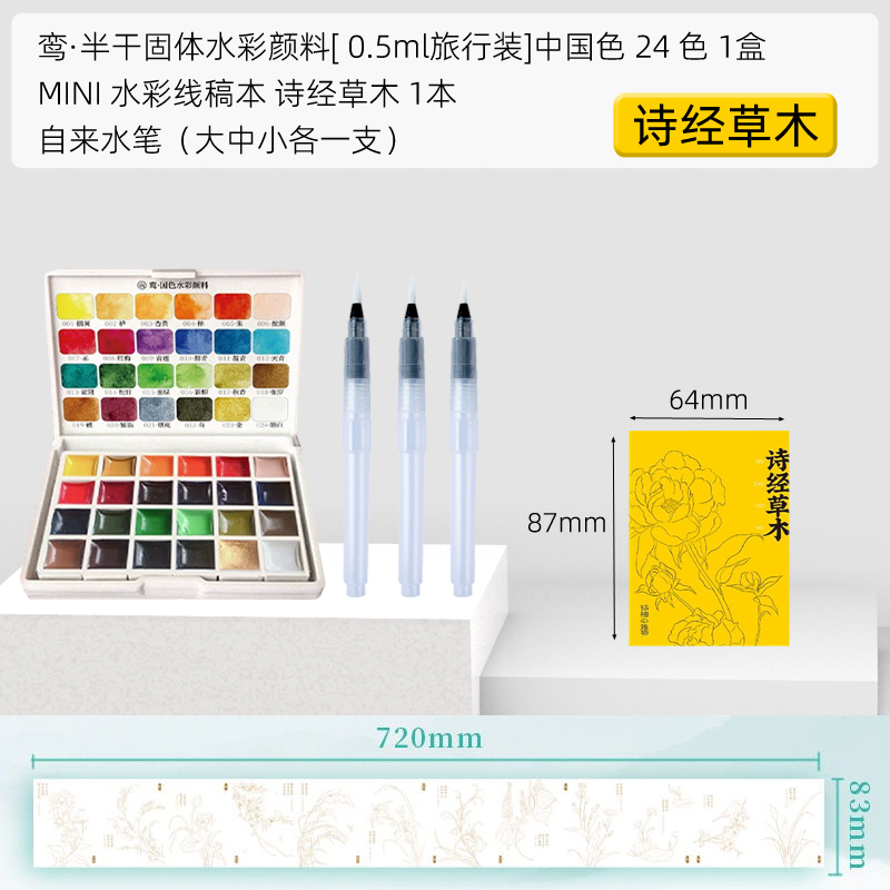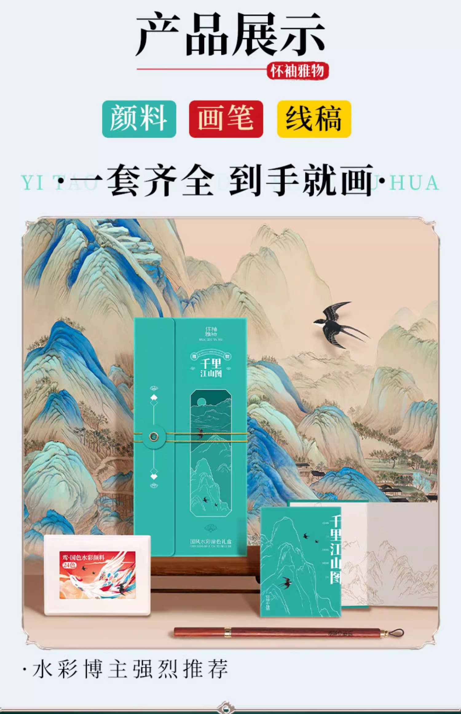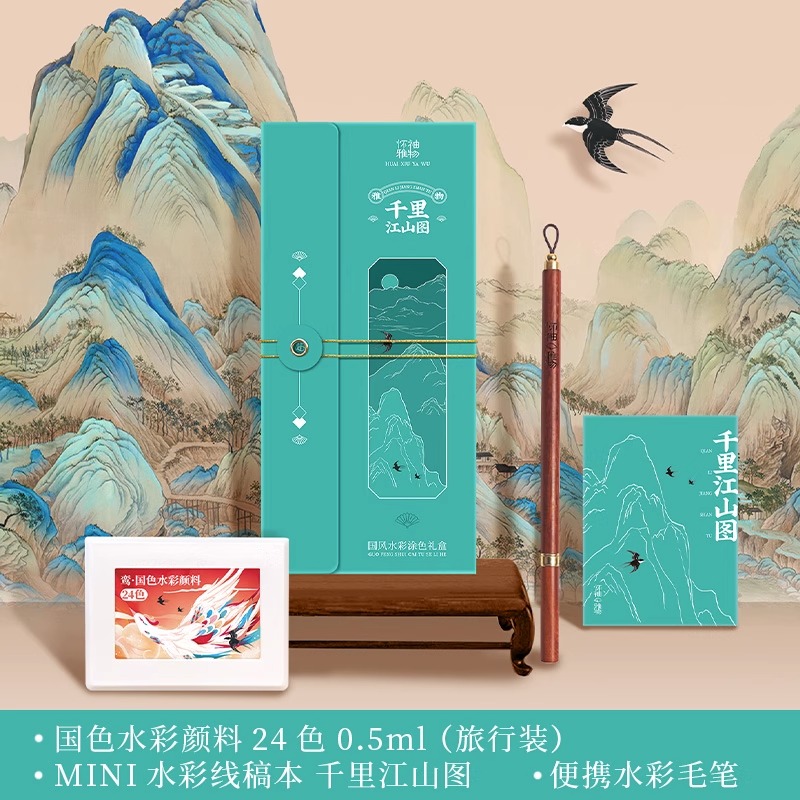 • [천 마일의 강과 산 그림] 펜 + 수채화 24색 + 선화가 포함된 선물 상자 - 단일 상자