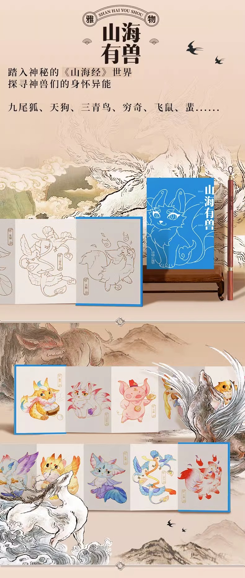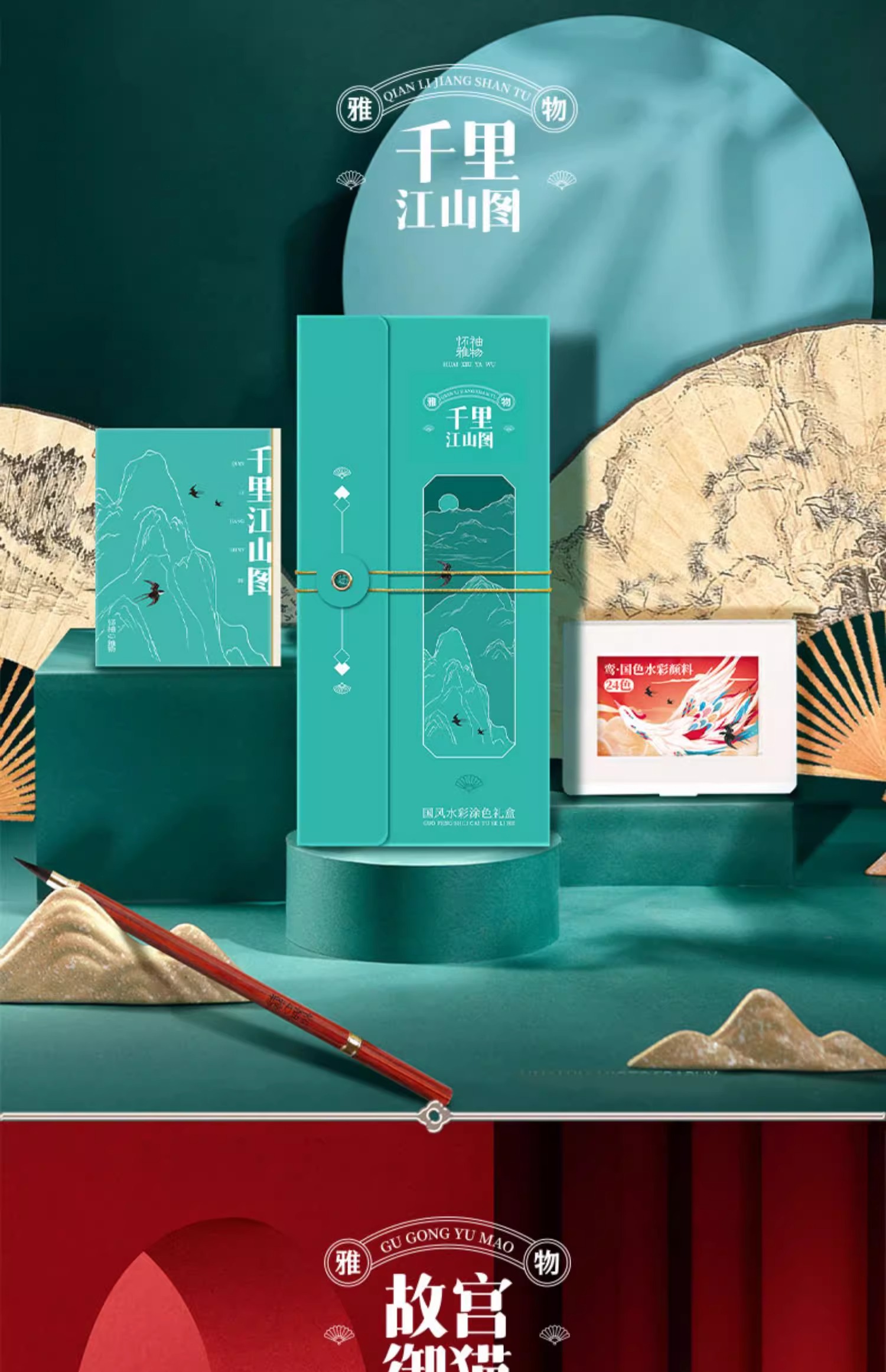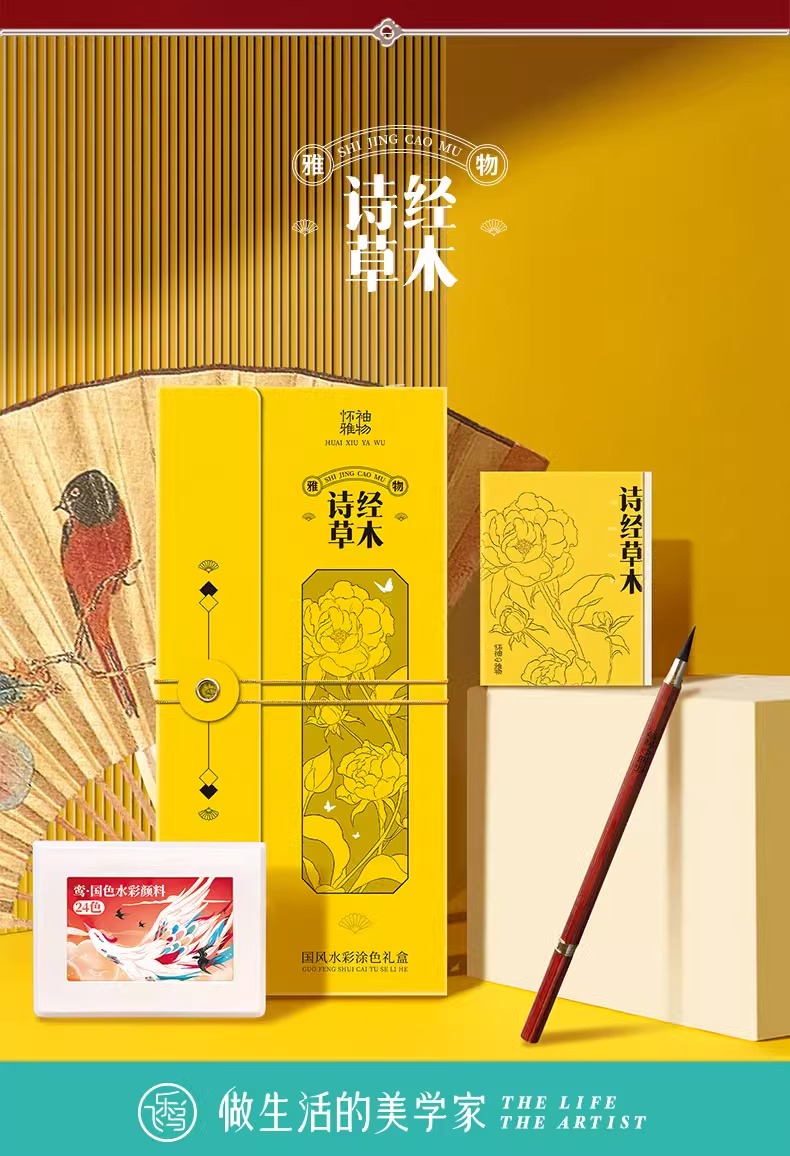 • [천 마일의 강과 산 그림] 펜 + 수채화 24색 + 선화가 포함된 선물 상자 - 단일 상자