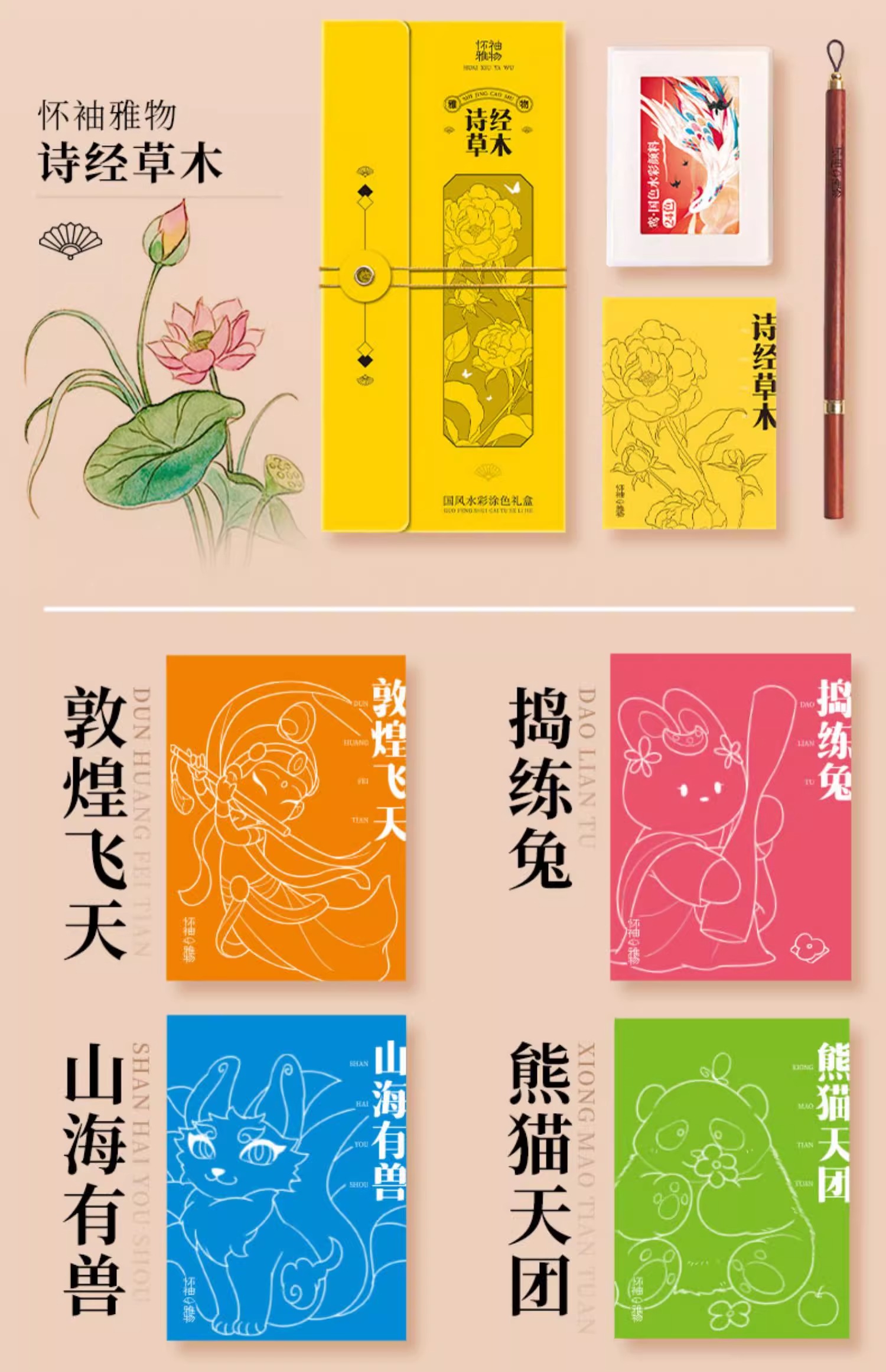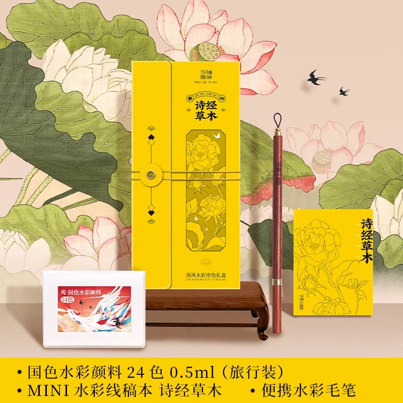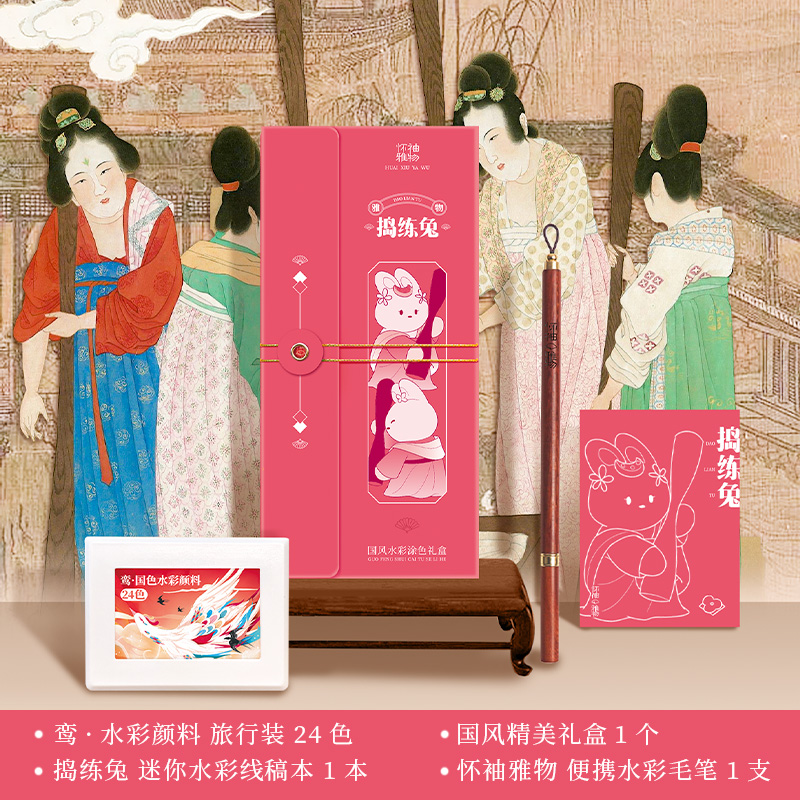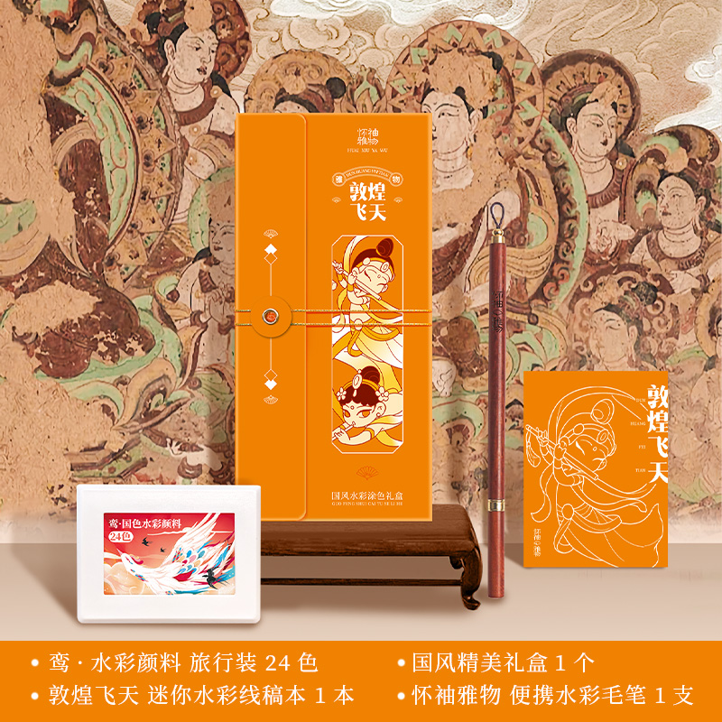 • [둔황비천] 펜 + 수채화 24색 + 선화본이 포함된 선물 상자 - 단일 상자