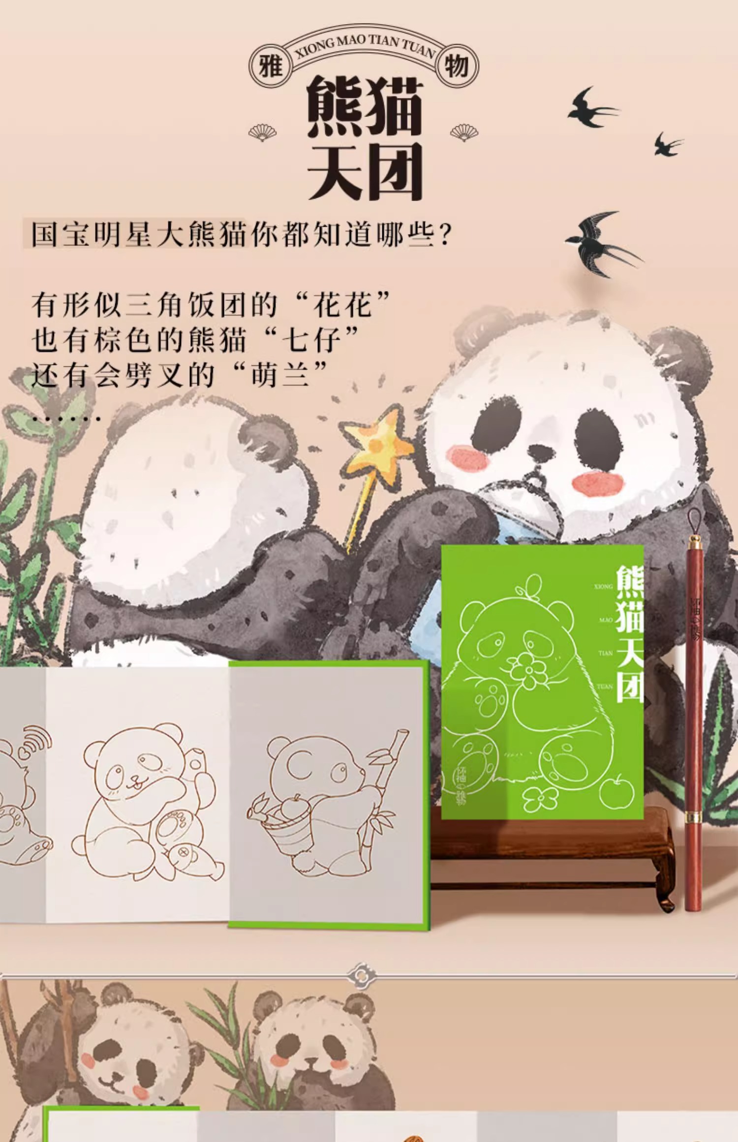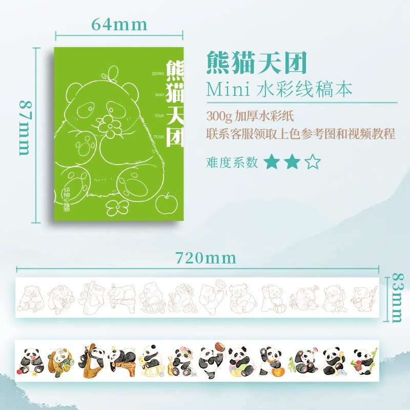 • 미니 수채화 선화 [Panda Tiantuan] 단일 도서 - 단일 상자