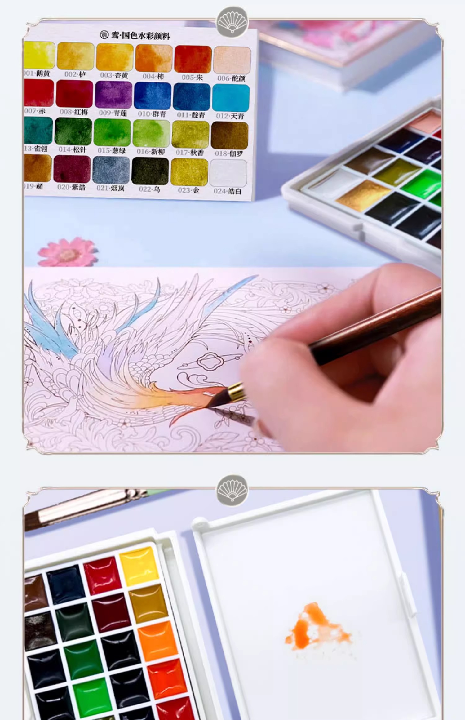 Feile Bird Huai 슬리브 우아한 국가 스타일 작은 그림 수채화 그림 세트 24 색 단색 수채화 안료 미니 충전