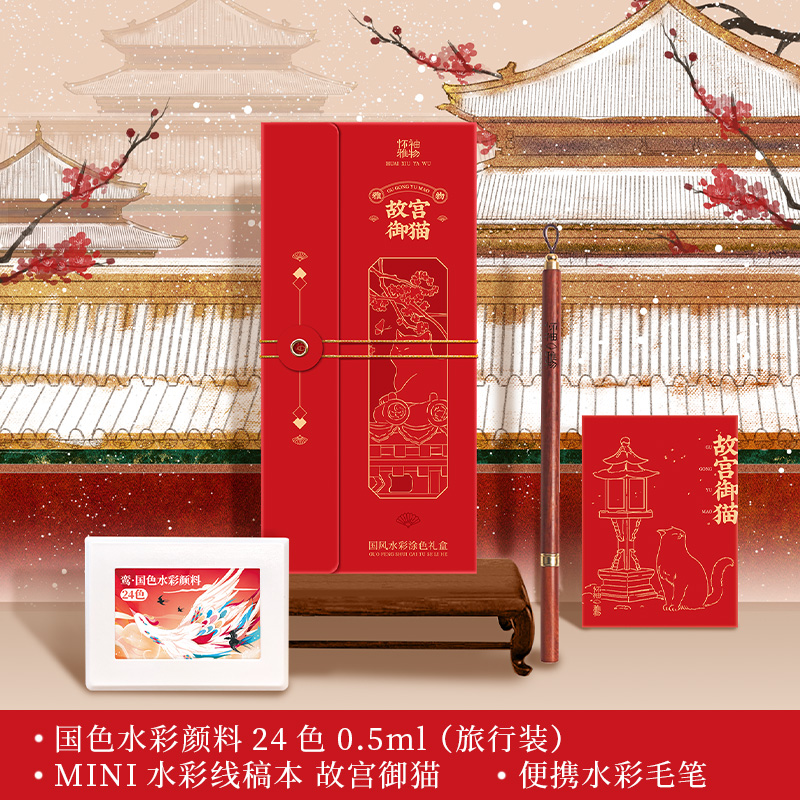 • [자금성 로얄캣] 펜 + 수채화 24색 + 선화본 - 싱글박스 포함