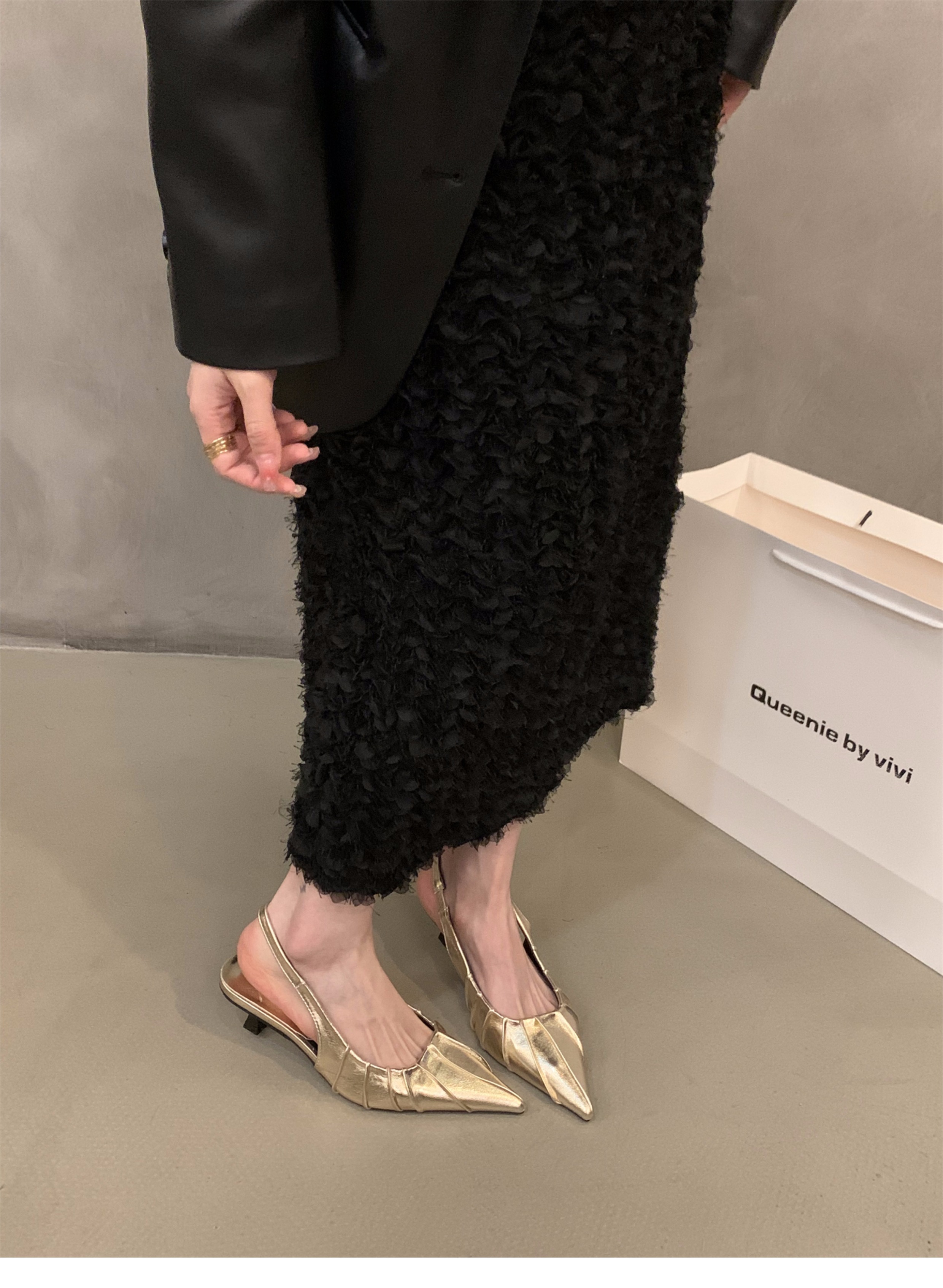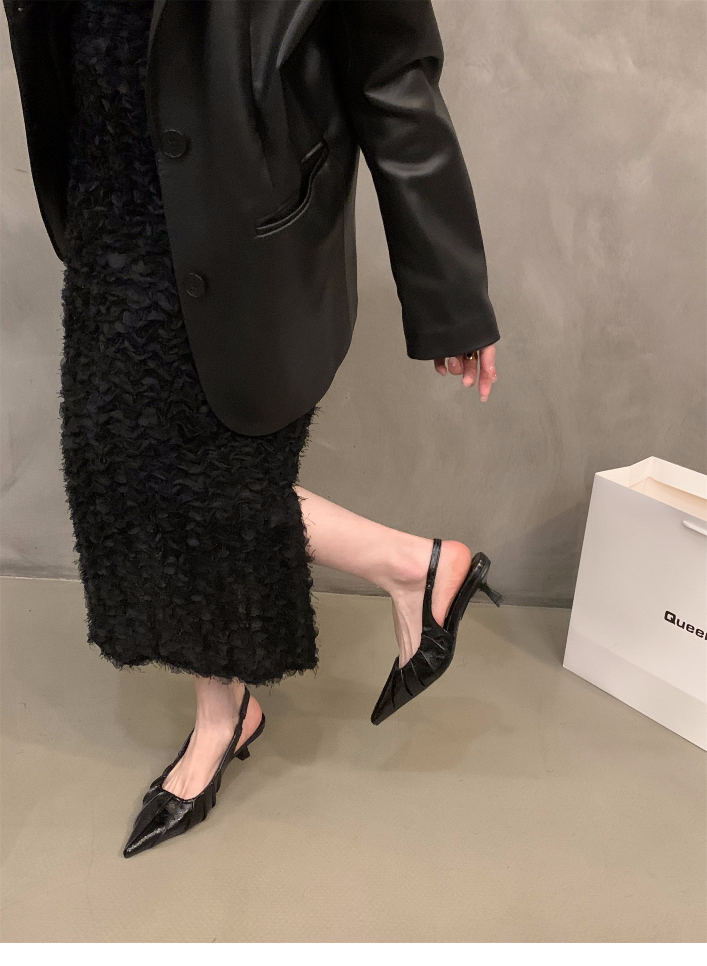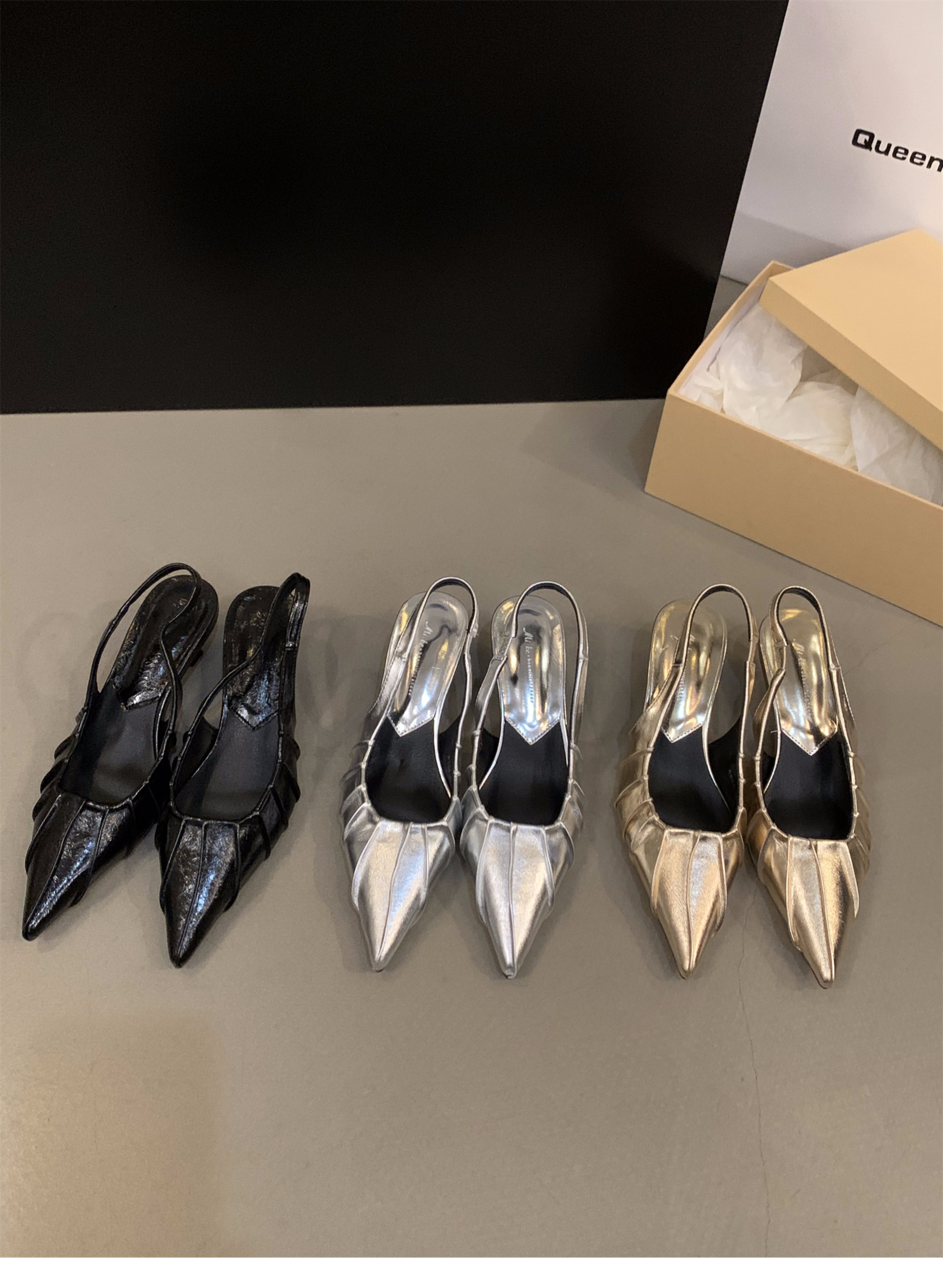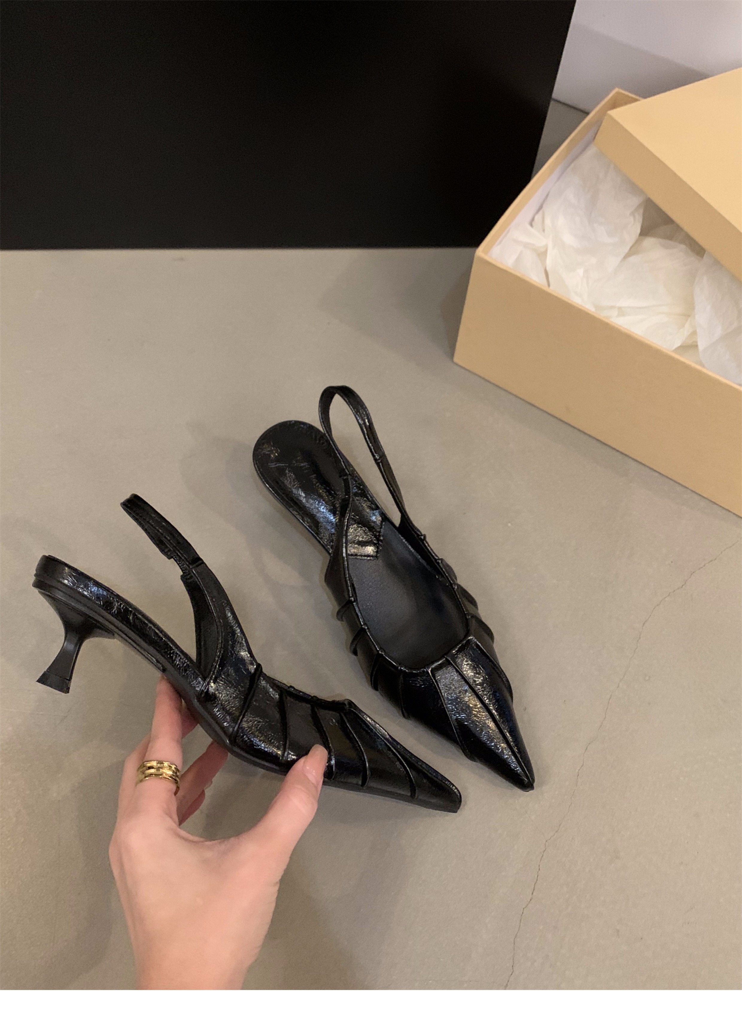 프랑스 실버 새끼 고양이 발 뒤꿈치 하이힐 샌들 여성 신발 2025 새로운 여름 우아한 치마 뾰족한 발가락 신발스토어 가기