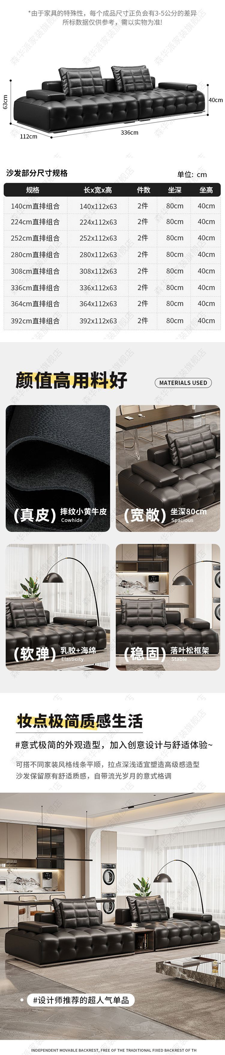 소파 가죽 탑 레이어 Cowhide 이탈리아 미니멀리스트 거실 대형 아파트 가벼운 고급 디자이너 가구