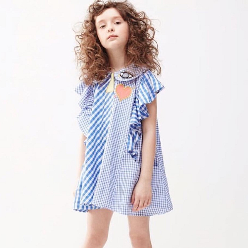 여자 치마 격자 추상 비행 슬리브 원피스 접합 치마 25 여름 원피스 3-8 세 아동복스토어 가기