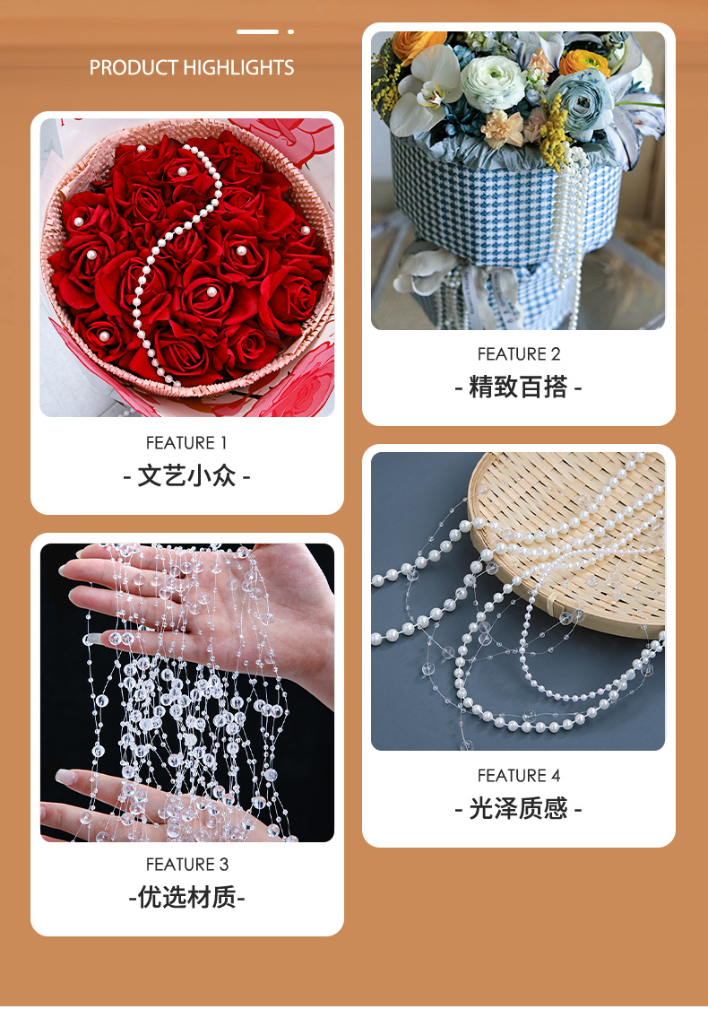 꽃다발 진주 체인 목걸이 꽃 포장 액세서리 장식 웨딩 비즈 수제 재료 꽃 가게 재료