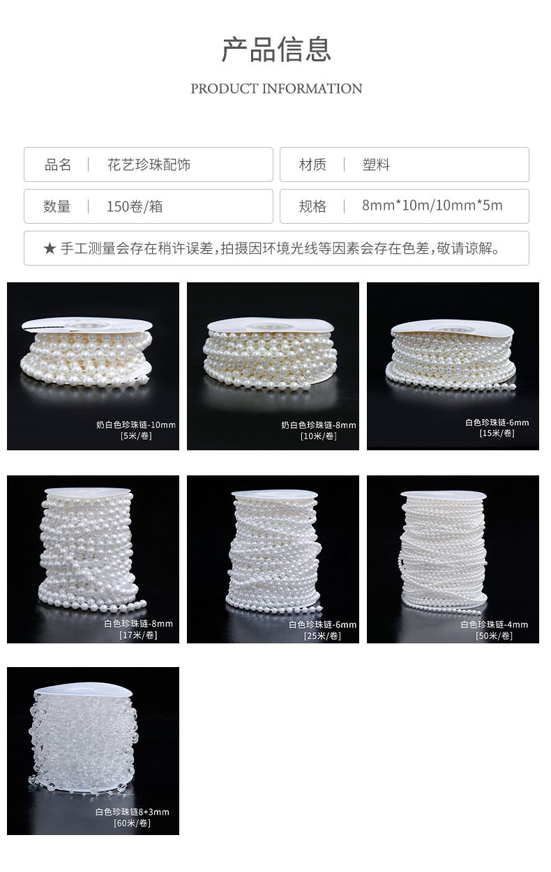• 밀크 화이트 반면 진주 체인 [6mm] 20m / 롤