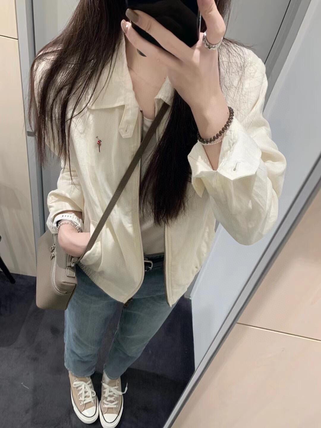 2025 봄 새로운 RL 포니 수 놓은 오래된 머니 스타일 캐주얼 레트로 린넨 랩 지퍼 짧은 재킷스토어 가기