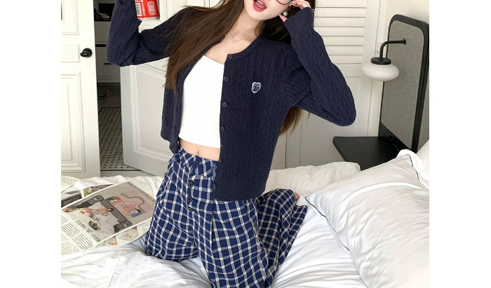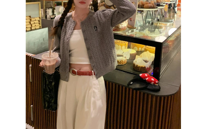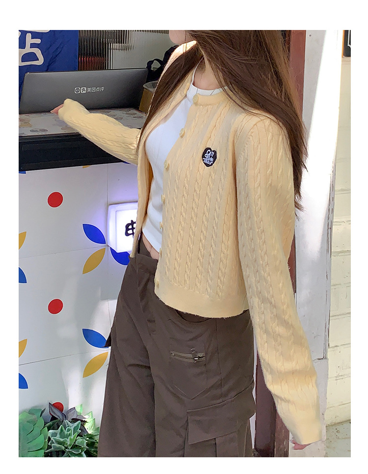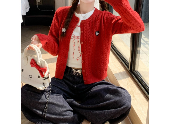 레드 아카데미 스타일 연령 감소 카디건 니트 짧은 자켓 여성의 2025 년 새로운 봄과 가을 트위스트 느낌 가을과 겨울 탑스토어 가기