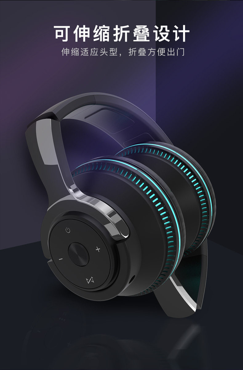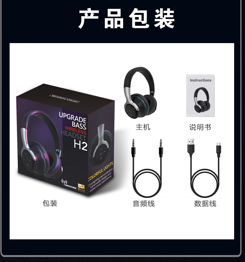 개인 맞춤형 H2 헤드셋 블루투스 이어폰 화려한 조명 중저음 접이식 무선 이어폰 공장 직판
