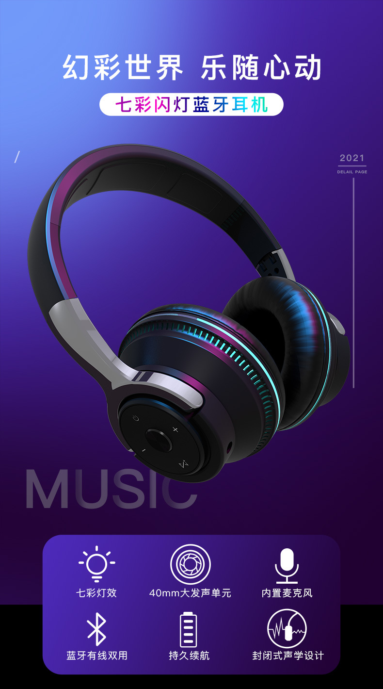 개인 맞춤형 H2 헤드셋 블루투스 이어폰 화려한 조명 중저음 접이식 무선 이어폰 공장 직판스토어 가기