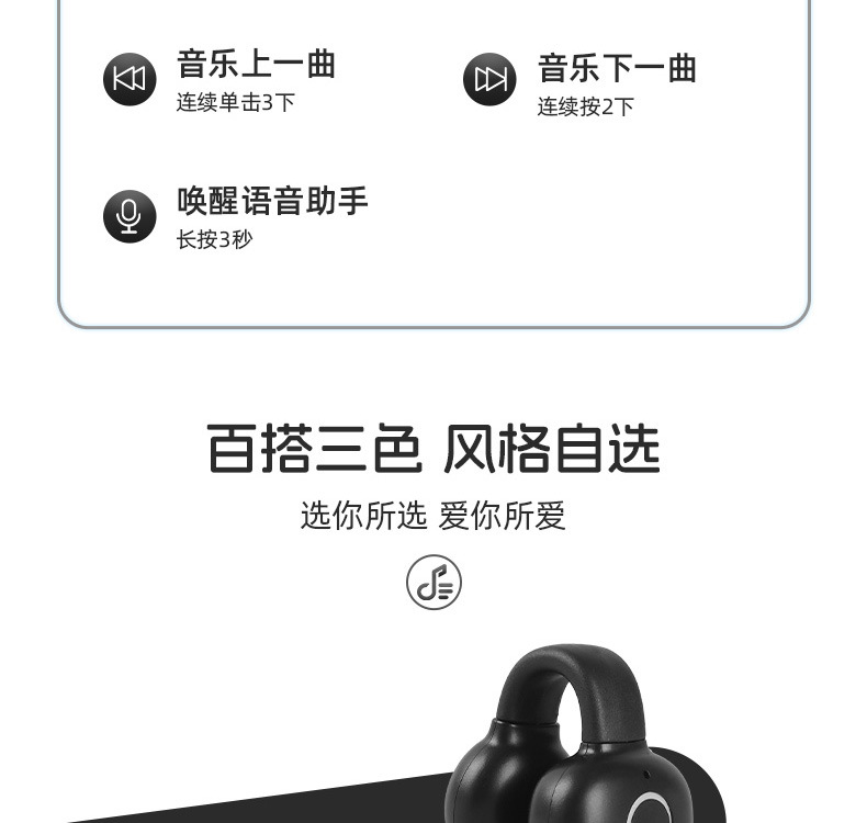 YX09 블루투스 이어폰 싱글 스테레오 이어클립형 골전도 컨셉 해외 무역용 블루투스 5.0