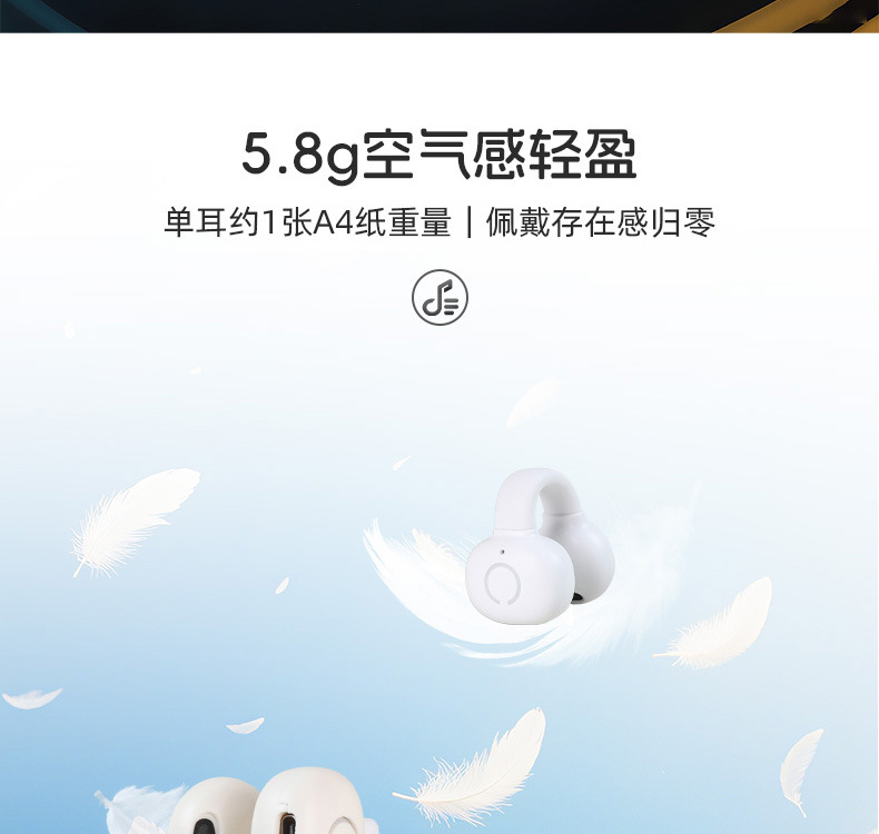 YX09夹耳蓝牙耳机,采用蓝汛方案主板,方案稳定,信号强,14mm铜环喇叭,音质清晰浑厚,电池60毫安,听歌8小时左右。