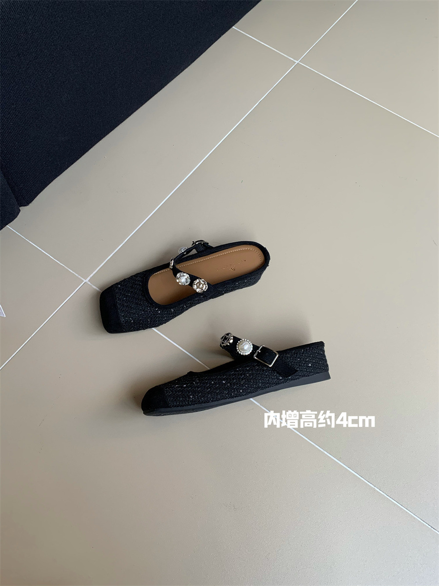 레트로 스타일 스퀘어 헤드 컬러 매칭 라인 스톤 버클 스트랩 래들 신발 여성 2025 년 봄과 가을 새로운 고층 얕은 입 신발스토어 가기