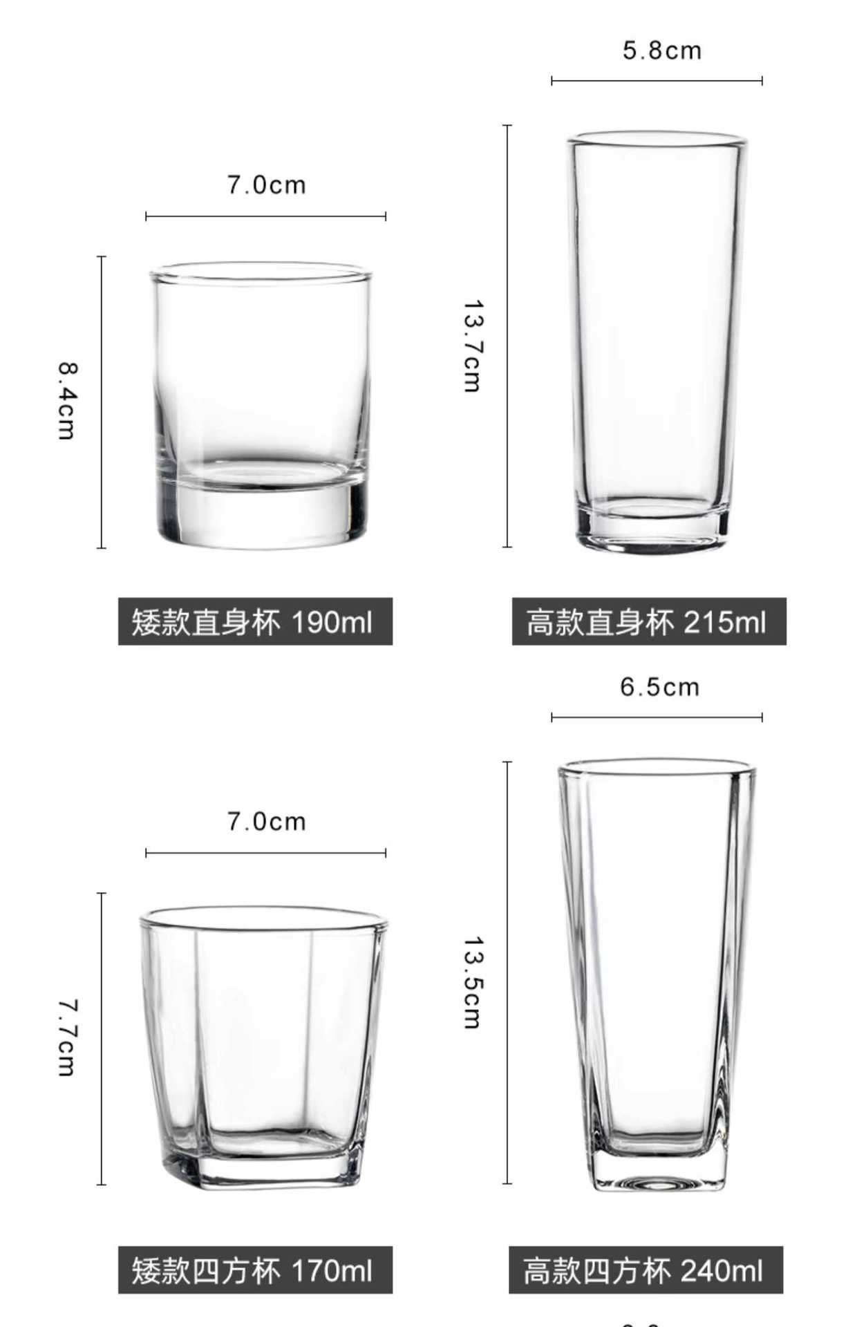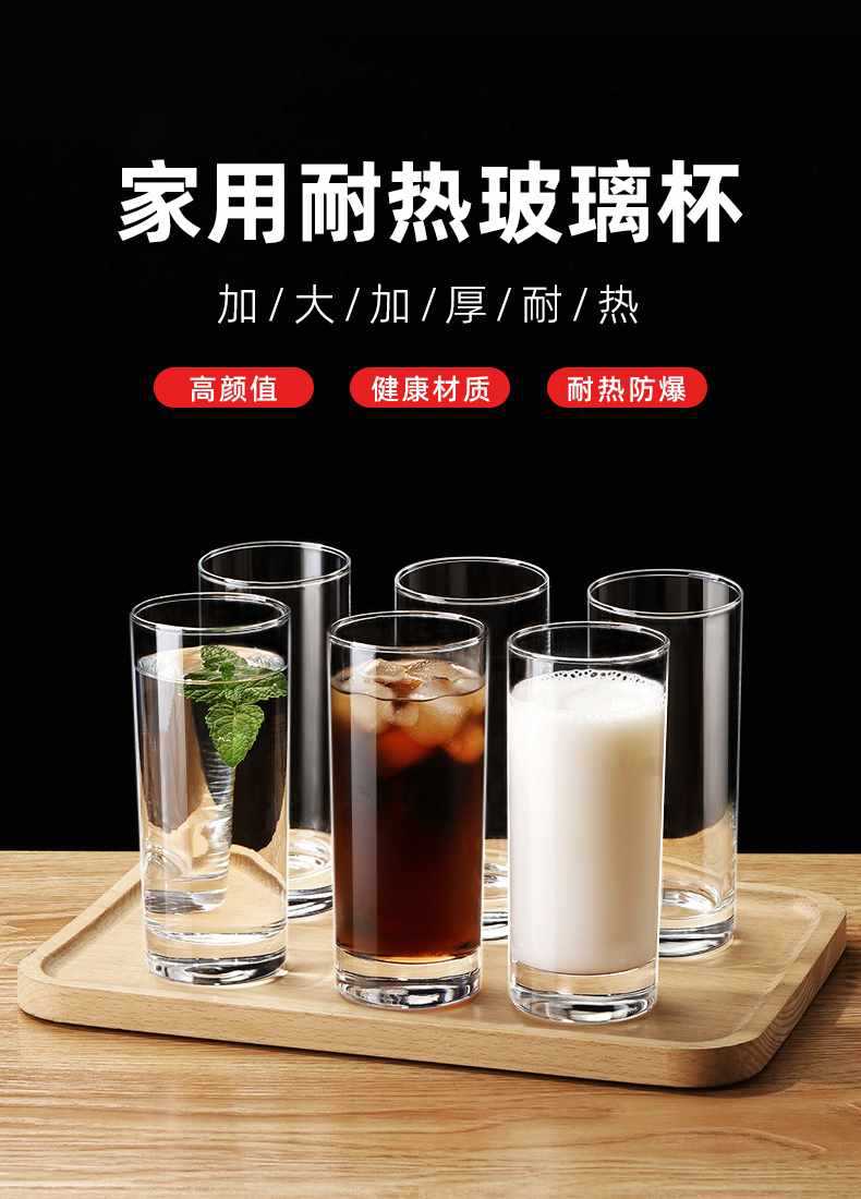 6 팩 두꺼운 내열 유리 물 컵 가정용 투명 마시는 차 컵 맥주 와인 컵 세트