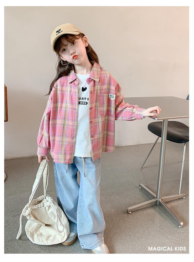 어린이 의류 소녀 셔츠 얇은 2025 봄과 가을 새로운 어린이 가을 탑 큰 어린이 코트 셔츠 트렌디스토어 가기