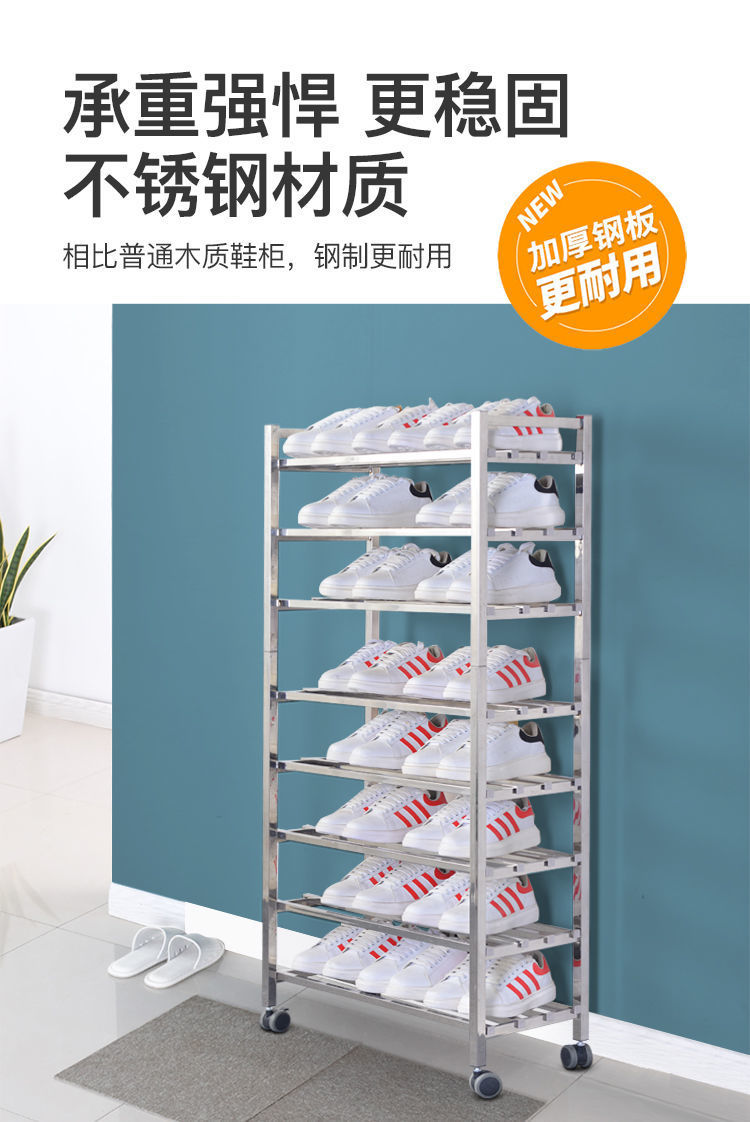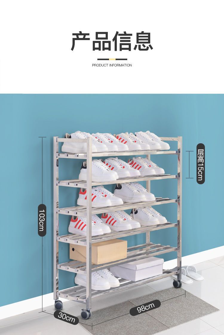 스테인레스 스틸 신발 랙 멀티 레이어 금속 신발 랙 발코니 선 스크린 모바일 스토리지 랙 바퀴