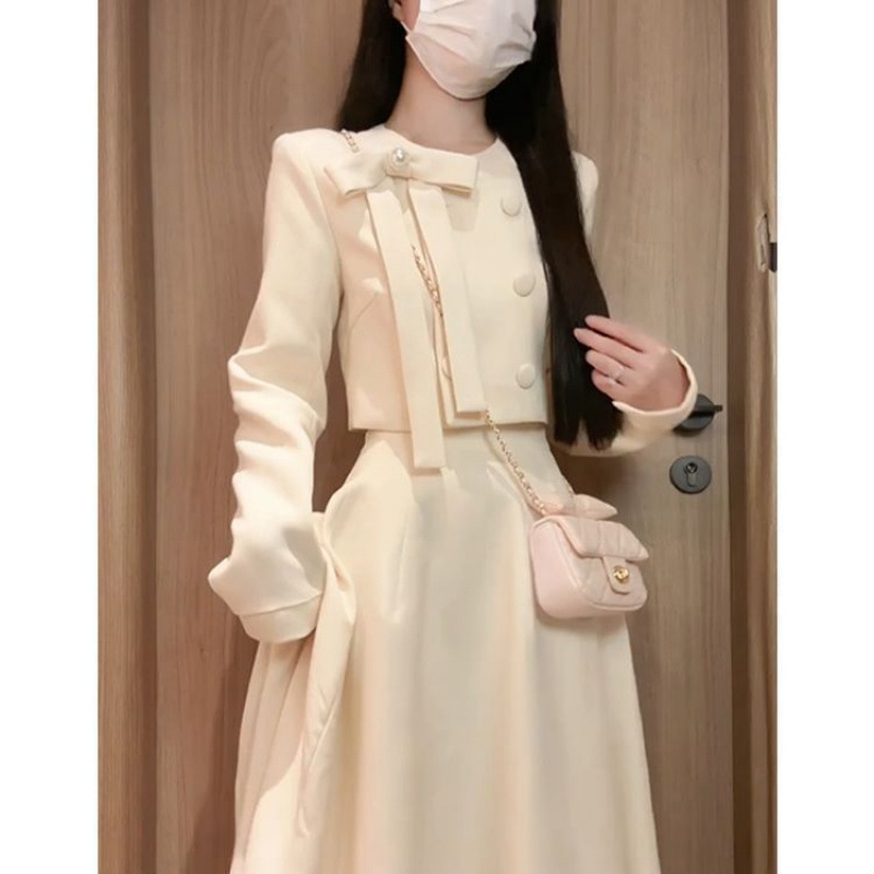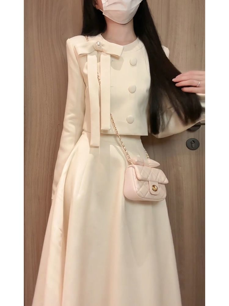 프랑스 부드러운 스타일 달콤한 샤넬 스타일 딸 스타일 착용 여성의 2025 봄 최고 치마 높은 스타일 세트