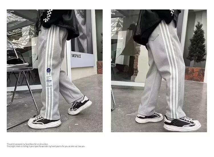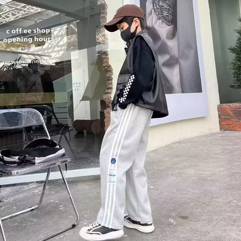 한국 남자들의 봄/여름/가을 웨이 바지 대형 어린이 바지 얇은 어린이 스포츠 스트레이트 바지 기모 트렌디 한 바지