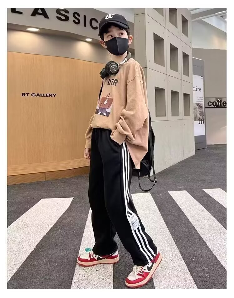 한국 남자들의 봄/여름/가을 웨이 바지 대형 어린이 바지 얇은 어린이 스포츠 스트레이트 바지 기모 트렌디 한 바지스토어 가기