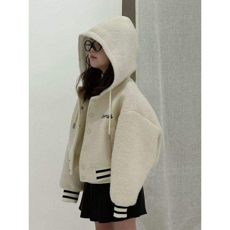 여자 아카데미 스타일 코트 가을과 겨울 2025 새로운 서양 스타일 두꺼운 양고기 양모 야구 세트스토어 가기