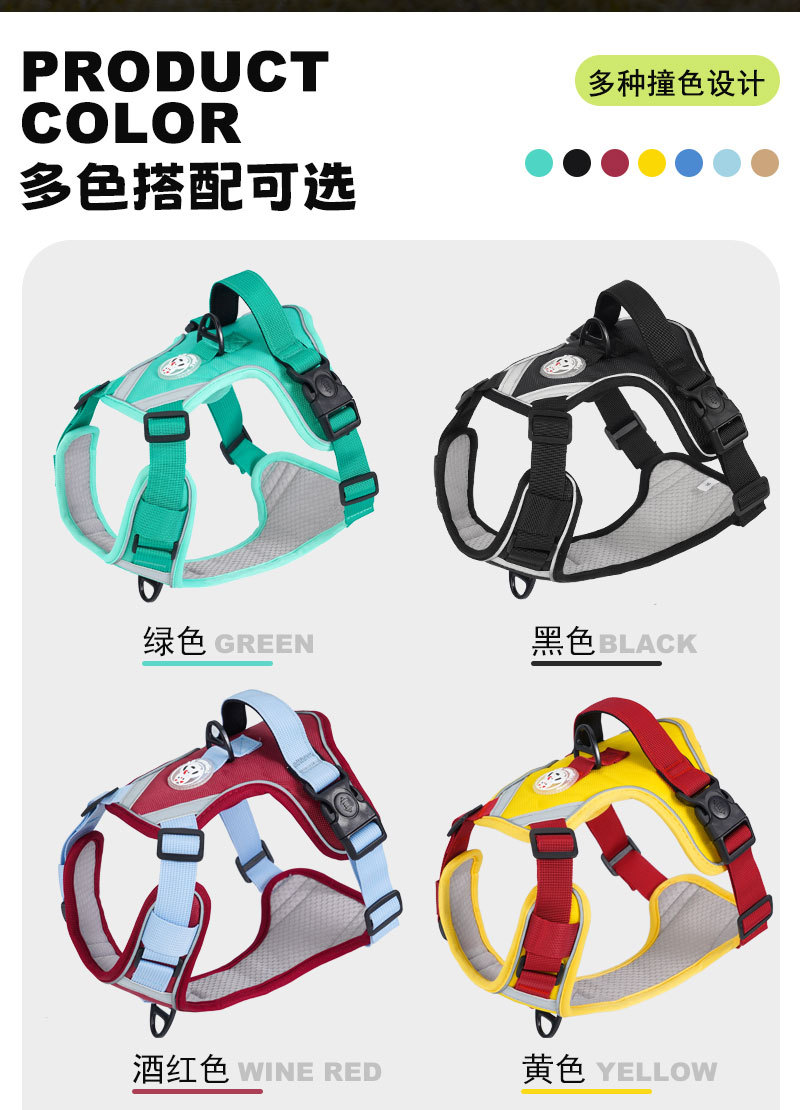 새로운 개 가슴 스트랩 견인 로프 조끼 유형 대형 개 조정 가능한 가슴 스트랩 반사 폭발 방지 견인 로프