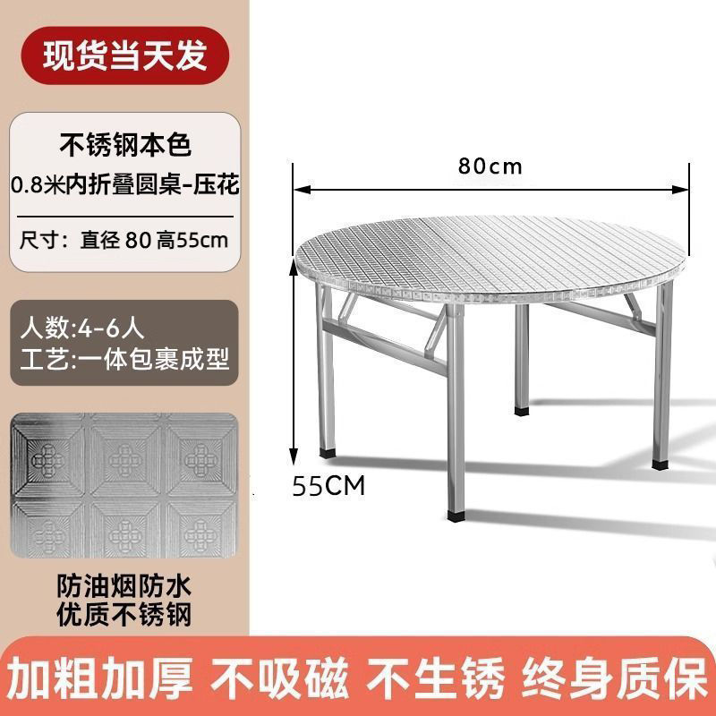 • 업그레이드된 두꺼운 직경 1m 원형 테이블 72 높이 접이식 스테인레스 스틸 테이블☆♢