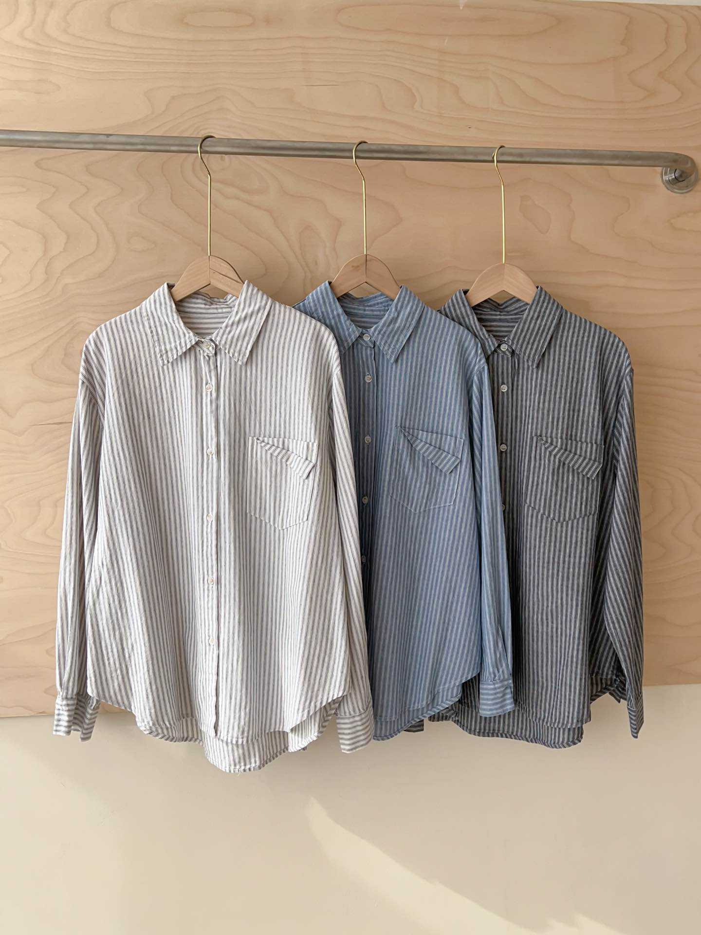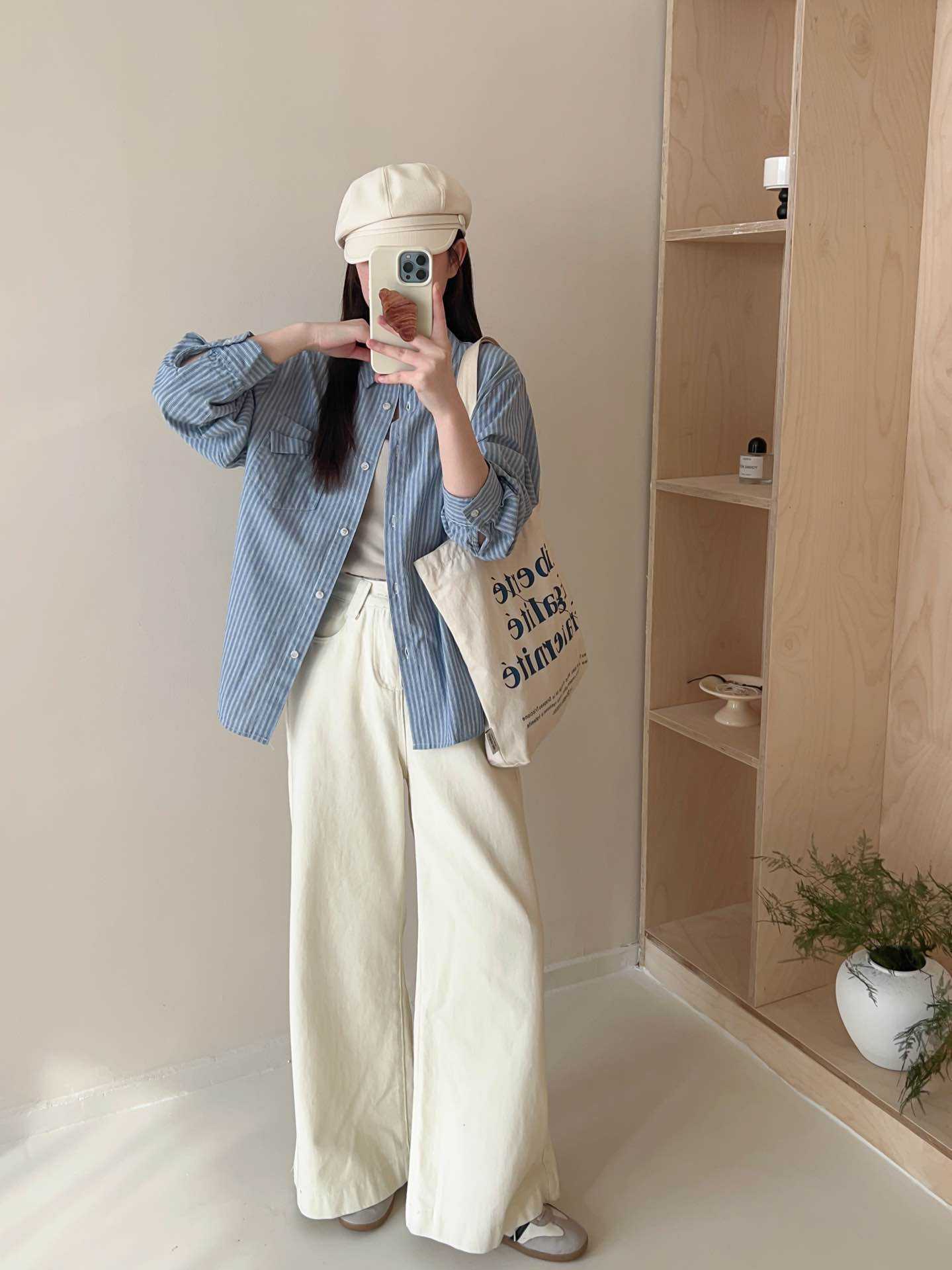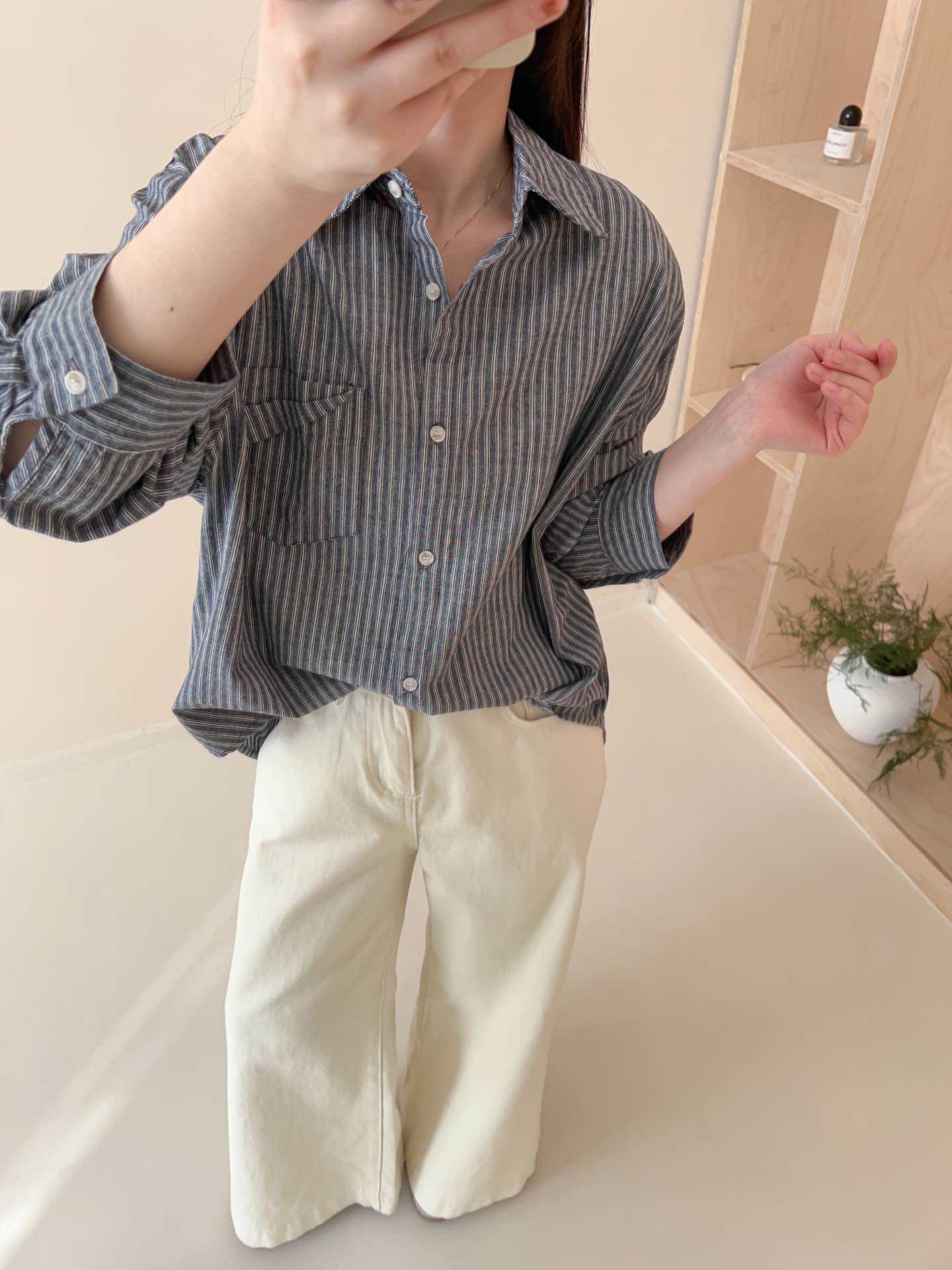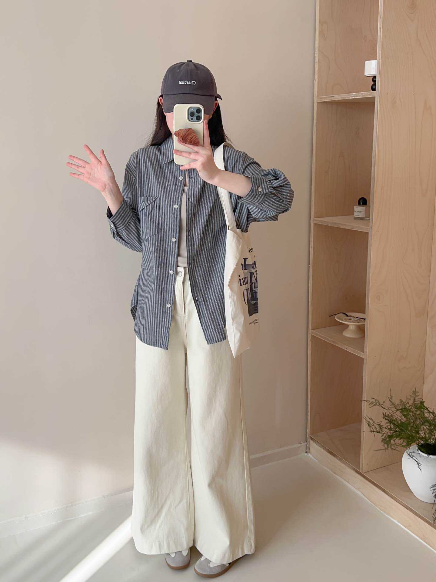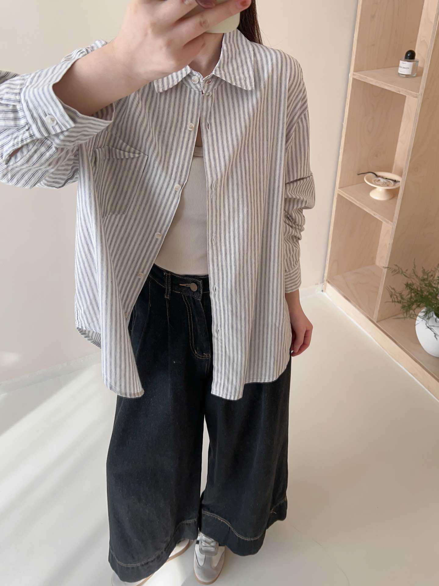 긴 소매 셔츠 2025 봄 새로운 한국 스타일 줄무늬 셔츠 여성 틈새 디자인 센스 포켓 탑스토어 가기