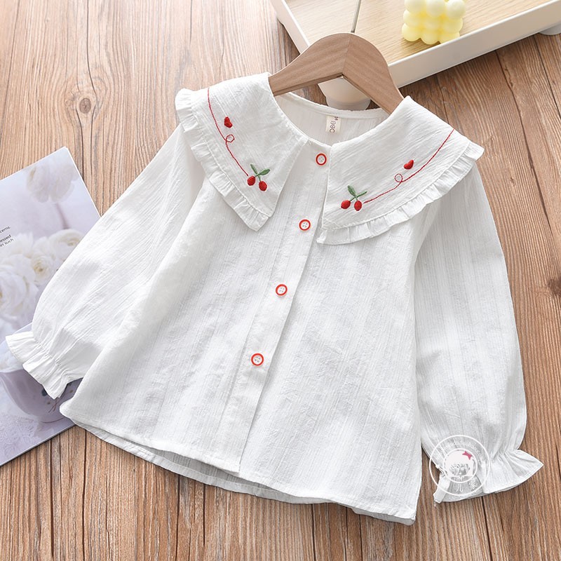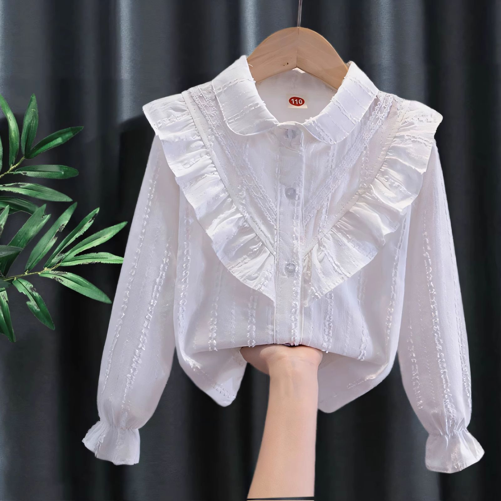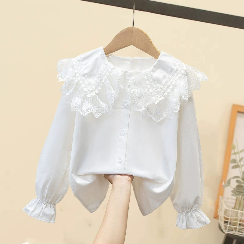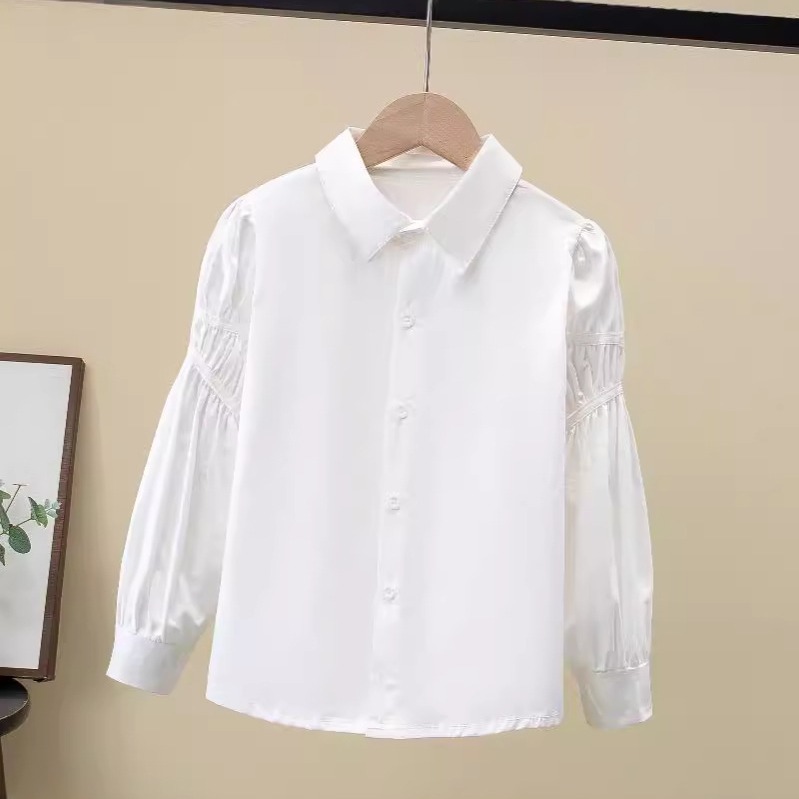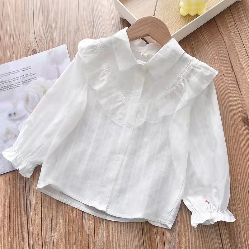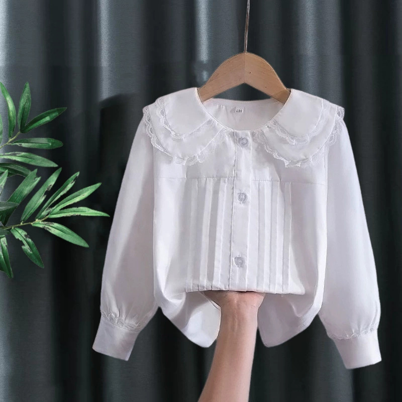 소녀 흰 셔츠 봄과 가을 긴 소매 안쪽면 어린이 백베이스 셔츠 서양식 아기 옷깃 셔츠스토어 가기