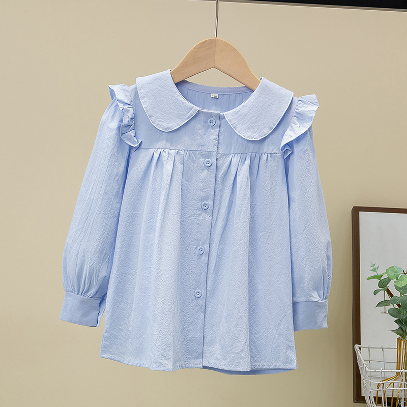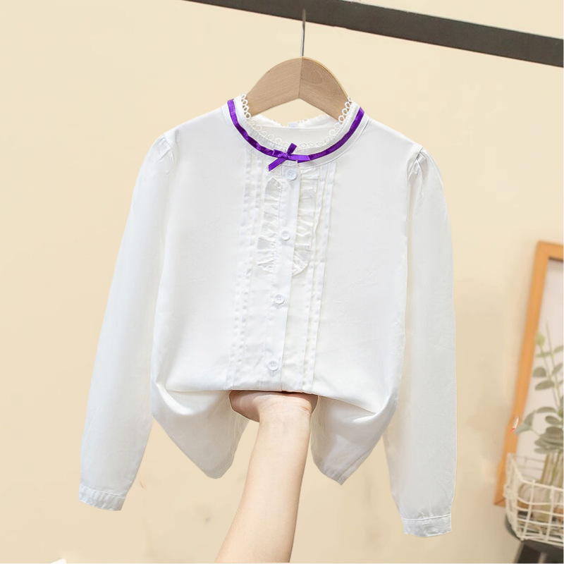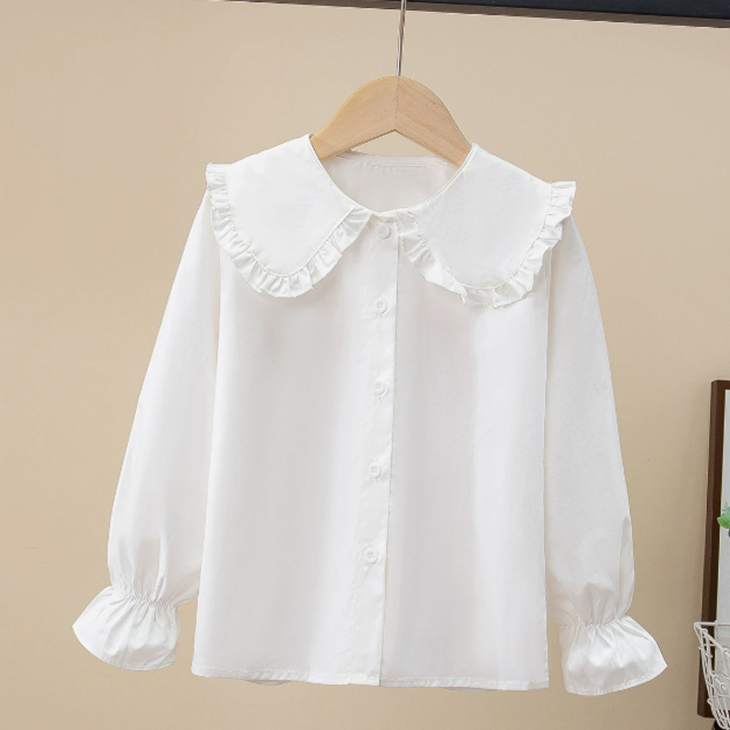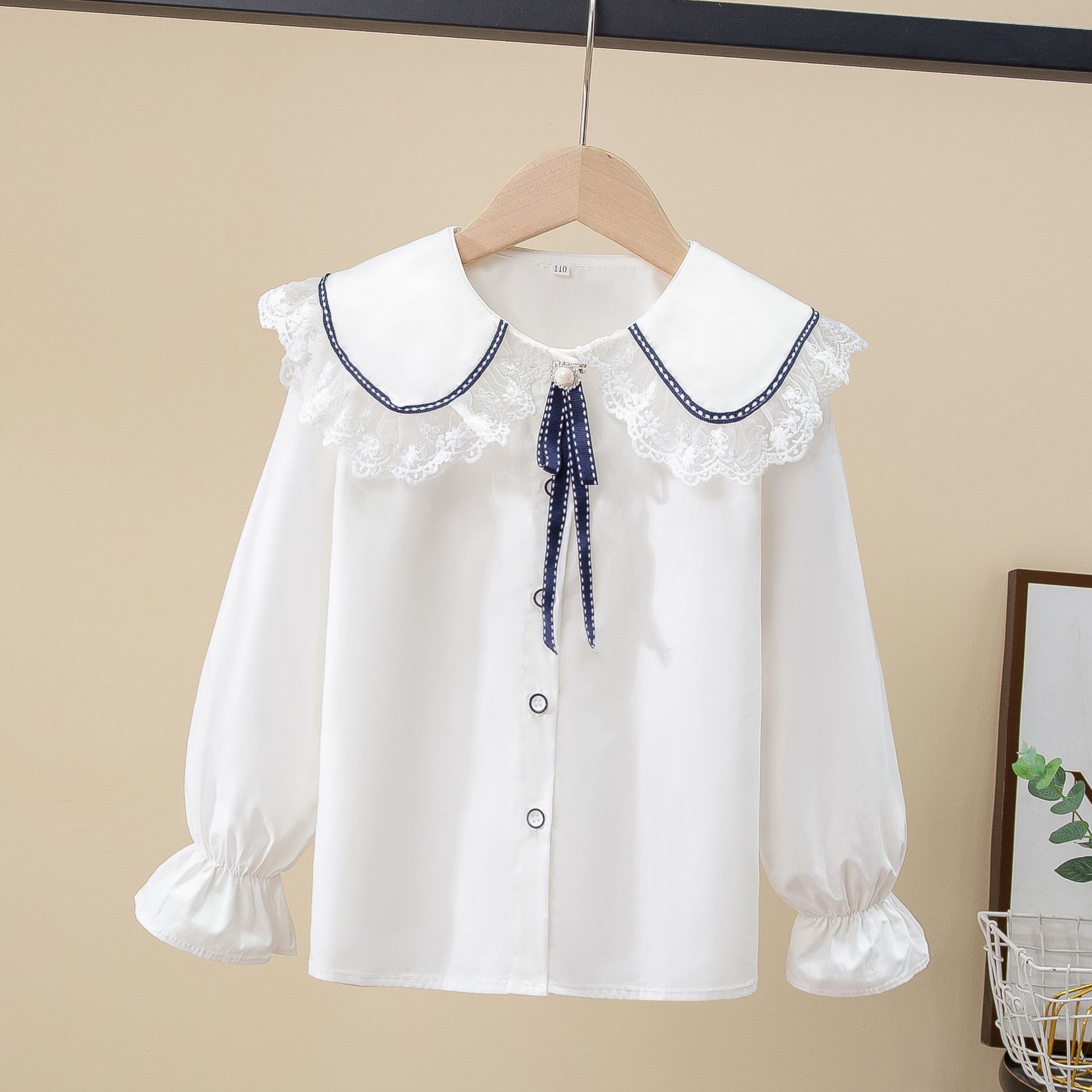 소녀 흰 셔츠 봄과 가을 긴 소매 안쪽면 어린이 백베이스 셔츠 서양식 아기 옷깃 셔츠