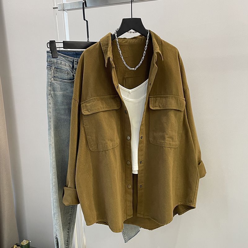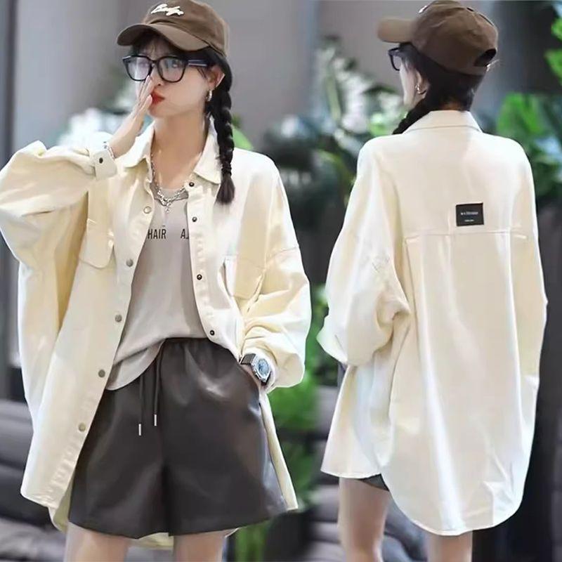 유럽 한국식 셔츠 여자 중간 길이 재킷 2023 가을 레트로 홍콩 스타일 느슨한 캐주얼 작은 탑스토어 가기